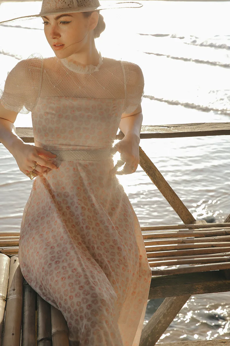 Бесплатная доставкаОригинальный дизайн AIGYPTOSЖенское летнее платье 2020 винтажное элегантное тонкое Макси-платье с цветочным принтом Ретро Mori Girl Сетчатое лоскутное шелковое и сатиновое длинное платьеПовседневное платье на каждый день, одеждаВечернее платьеПлатьяПлатье для выпускного вечера.