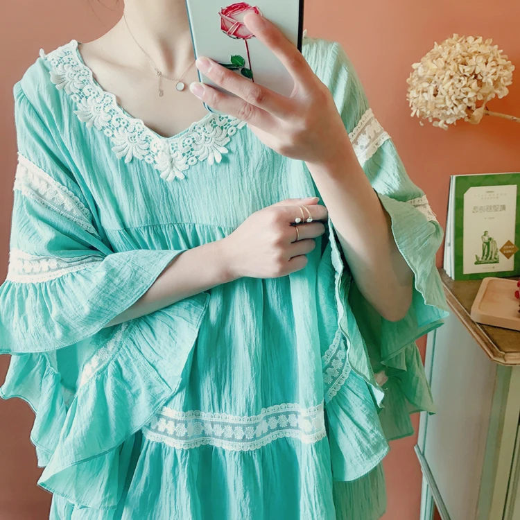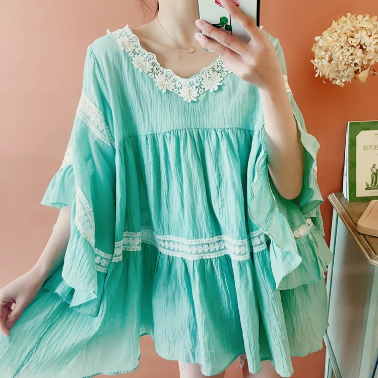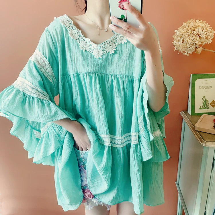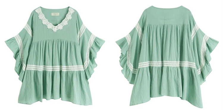 Бесплатная доставкаОригинальный дизайн AIGYPTOSВесенне-летние женские рубашки больших размеров, корейские милые повседневные свободные кружевные лоскутные хлопковые льняные зеленые рубашки, женские топы, женские блузки, женская одежда.