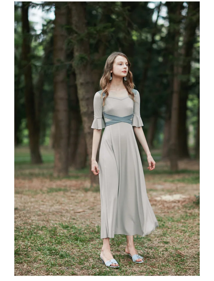 Женское винтажное короткое платье, элегантное облегающее длинное платье в стиле ретро, Повседневное трикотажное Хлопковое платье на шнуровке, весна-лето 2019 Ткань: Вязание хлопок Цвет: розовый, фиолетовый, серый, светильник Воротник: вырез в форме буквы V Длина рукава: с короткими рукавами