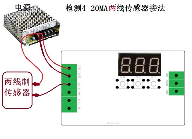 Особенности продукта 4-20 мА Обнаружение тока: модуль Первоначально отображает PX после подачи питания, и он отображает текущий режим набора. В это время вы можете настроить режим, нажав кнопки «увеличить» и «уменьшить». Через 4 секунды появится отображение измеренного тока в реальном времени. Верхние и нижние предельные значения и выбор функционального режима можно установить с помощью трех кнопок (с интерфейсом RS485), текущее значение и установленное значение можно считывать в режиме реального времени посредством связи RS485 Несколько режимов можно установить следующим образом: (нажмите кнопку уменьшения в течение 3 секунд, чтобы войти в режим регулировки) P-1: всасывание превышает заданное значение, ниже отключение Измеренное значение превышает нижний предел и реле тянет, а меньшее значение тянет и отключается P-2: отсоедините больше установленного значения, чем всасывание Когда измеренное значение превышает более низкое предельное значение, реле выключено, и если измеренное значение ниже нижнего предельного значения, P-3: всасывание в интервале, отключение вне интервала Измеренное значение находится между верхним пределом и нижним пределом. P-4: отключен в интервале, высасывается из интервала Измеренное значение находится между верхними и нижними уровнями, реле отключено, в противном случае P-5: отсоедините ниже нижнего предела, проведите выше верхнего предела Когда измеренное значение превышает нижний предел, реле отключено, и если значение превышает верхний предел, реле рисует P-6: всасывание ниже нижнего предела, отключение выше верхнего предела Измеренное значение превышает более низкое предельное значение, реле поглощает, а верхнее значение превышает предельное значение, и реле открывается. Инструкции по установке Для удобства описания, K1 представляет ключ настройки, K2 представляет ключ увеличения, и K3 представляет ключ уменьшения Описание ключа: «K1 shift/adjust K2 увеличивает K3 уменьшение/Выбор режима Нажмите клавишу K1, первая и первая цифры мигают, отрегулируйте нижний предел сто, нажмите K2, K3 для регулировки 0 ~ 1 изменения Нажмите клавишу K1, вторая и вторая цифры мигают, отрегулируйте нижний предел до десяти цифр, нажмите K2, K3 Отрегулируйте 0 ~ 9 изменений Нажмите клавишу K1, третья и третья цифры мигают, отрегулируйте нижние концевые цифры, нажмите K2, K3 Отрегулируйте 0 ~ 9 изменений Нажмите клавишу K1, чтобы мигать четвертую и четвертую цифры, отрегулируйте верхний предел ста цифр, нажмите K2, K3 для настройки 0 ~ 1 изменения Нажмите клавишу K1, пятая и пятая цифры мигают, отрегулируйте верхний предел десяти цифр, нажмите K2, K3 Отрегулируйте 0 ~ 9 изменений Нажмите клавишу K1, шестая и шестая цифры мигают, отрегулируйте верхний предел одной цифрой, нажмите K2, K3 Отрегулируйте 0 ~ 9 изменений Нажмите кнопку K1 в течение седьмого времени, цифровая трубка не мигает, измеренное значение тока отображается Описание протокола RS485 modbus_RTU (только для плат с 485 коммуникацией) Скорость передачи данных: 9600, 8, N, 1 Адрес по умолчанию модуля 01 Код функции записи 06 соответствует адресу регистрации, 00: нижний предел, 01: верхний предел, 02: Настройка режима Чтение кода функции регистра 03 соответствует адресу регистра, 00: чтение значения нижнего предельного набора, 01: чтение верхнего предельного значения, 02: чтение текущего режима Пример схемы проводки