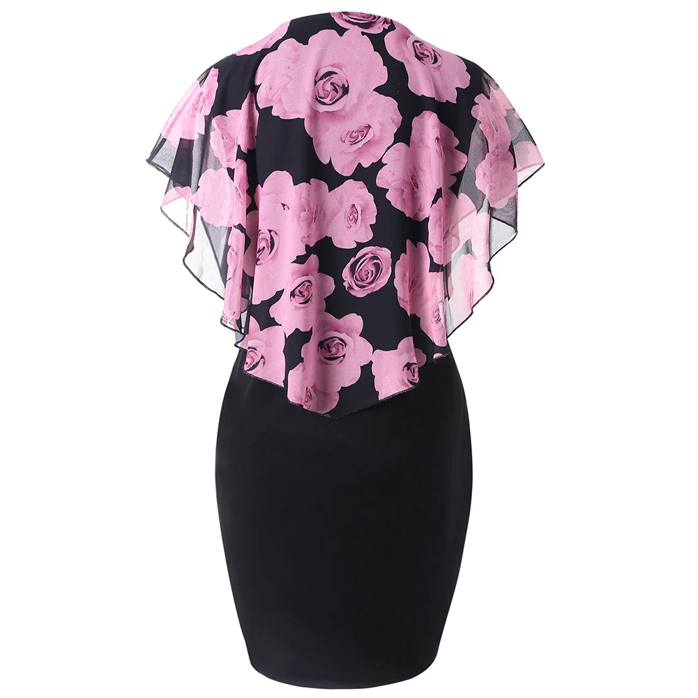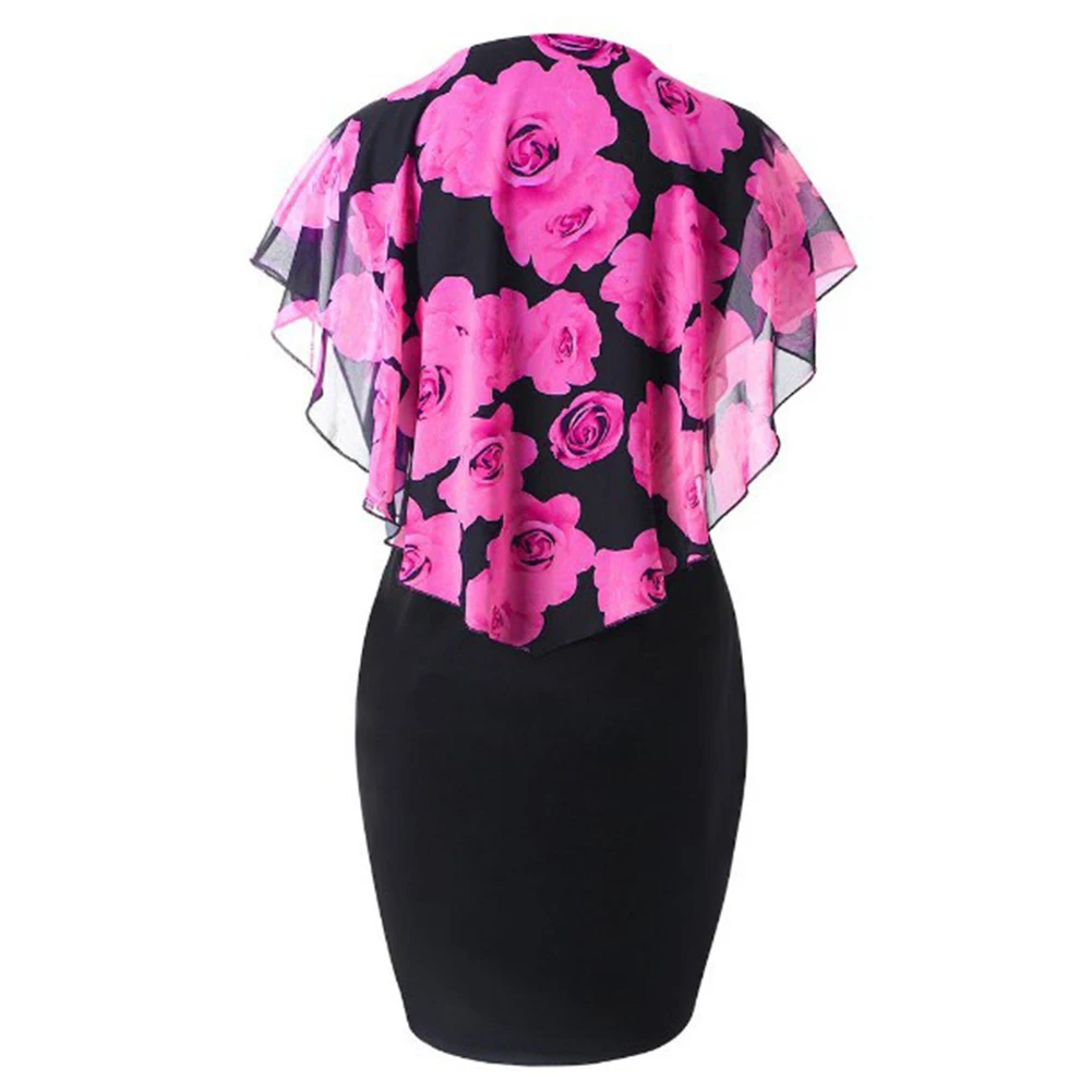 Новое модное женское платье размера плюс с О-образным вырезом, элегантное платье с цветочным принтом розы, облегающее Платье До Колена, офисные женские вечерние платья-карандаш миди