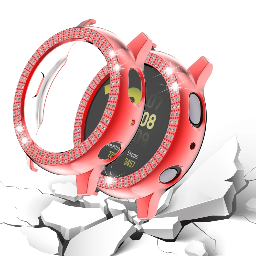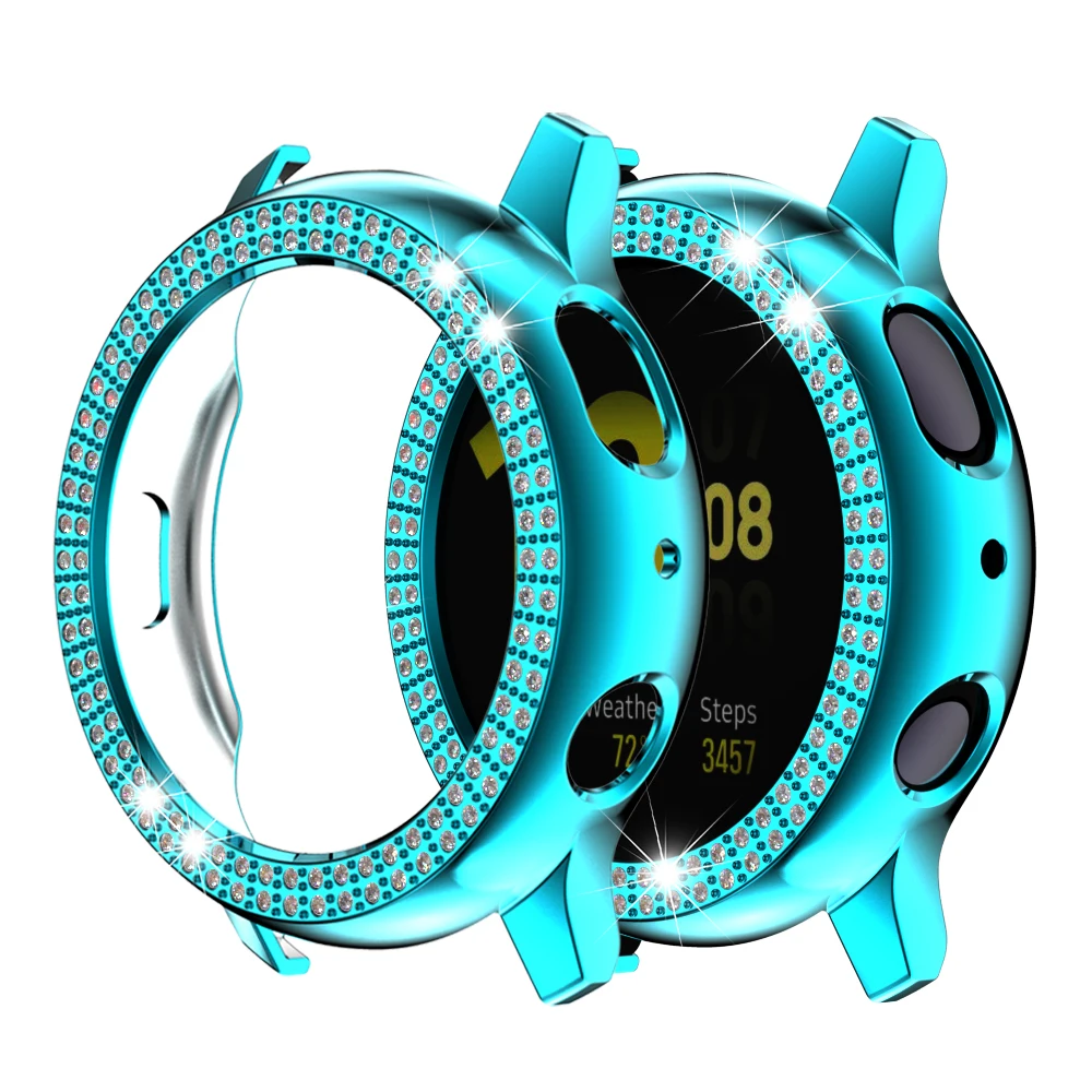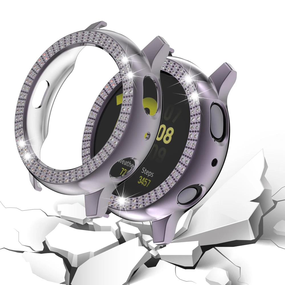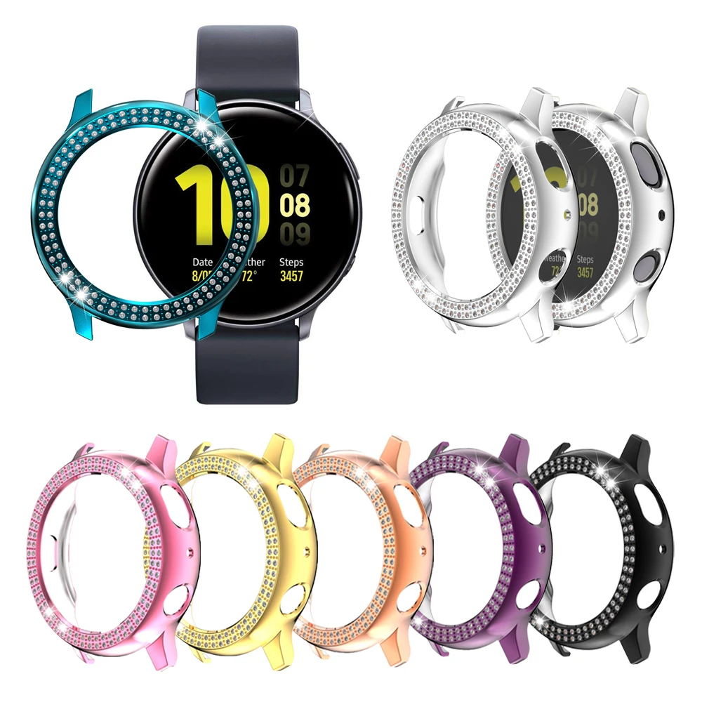 Новинка фирменные и высокого качества Материал: Поликарбонат Модель: 40 мм/44 мм Совместим с Samsung Galaxy Watch Active 2 Цвет: 9 цветов цвет s на выбор Легко установить и снять Роскошный дизайн со стразами Советы: Нет протектора на экране часов, просто полая Рамка для экрана, из-за избежания неисправности функции сенсорного экрана. Посылка: 1 чехол для часов из поликарбоната с бриллиантами