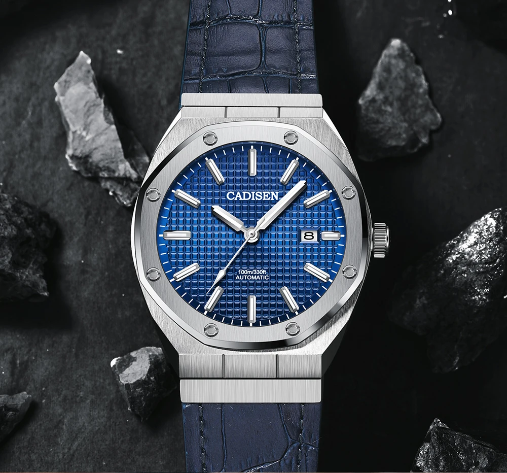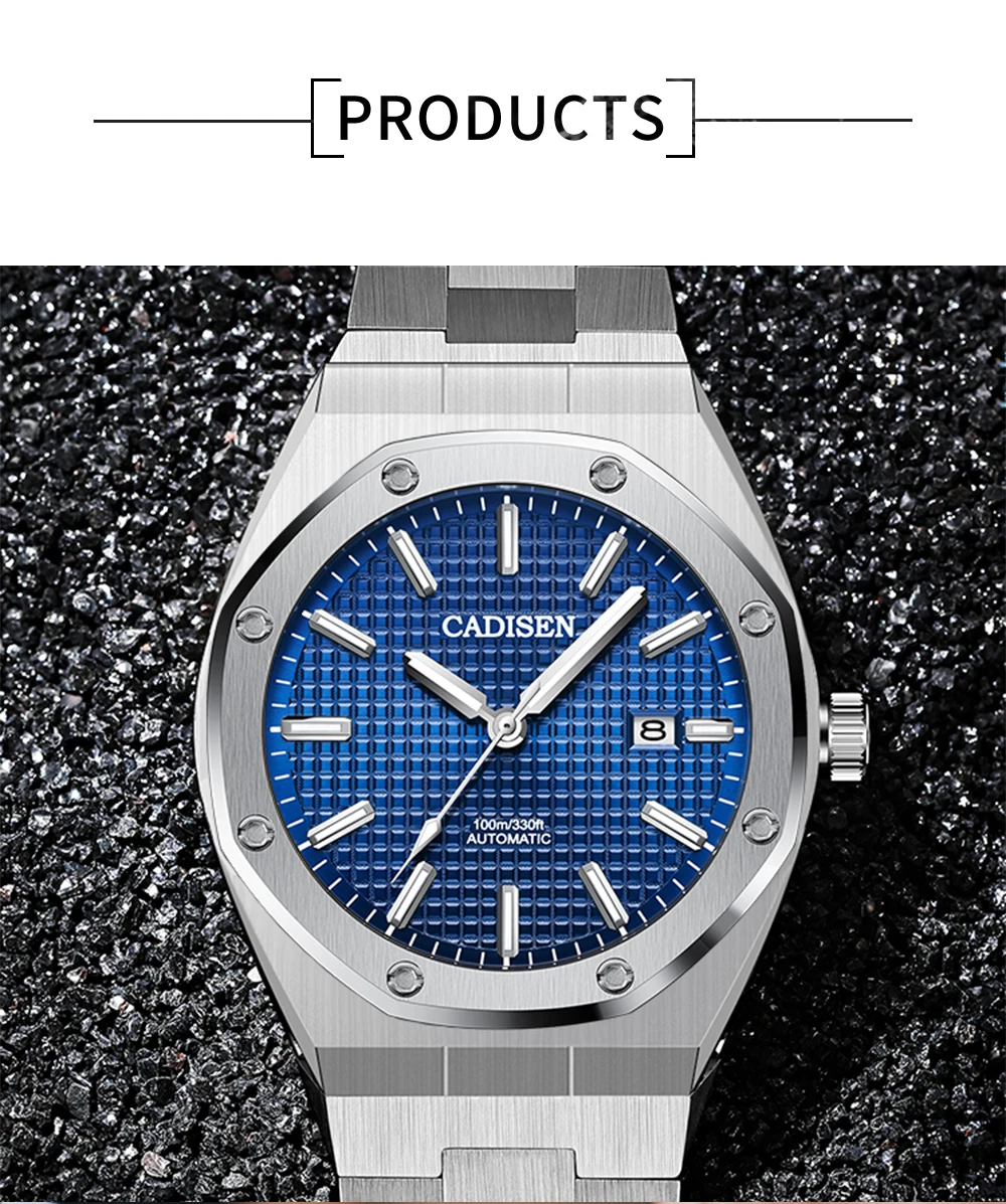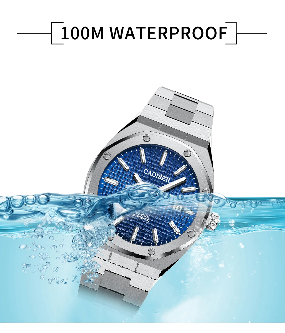 CADISEN мужские часы Роскошные Механические часы люксовый бренд Япония NH35A движение 100 м водонепроницаемые бизнес модные синие наручные часы