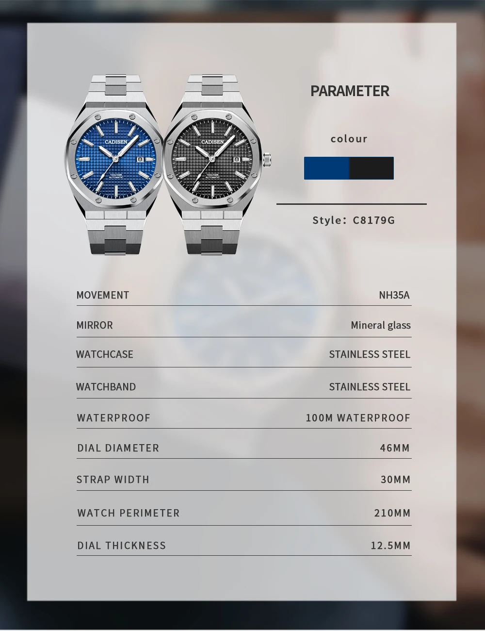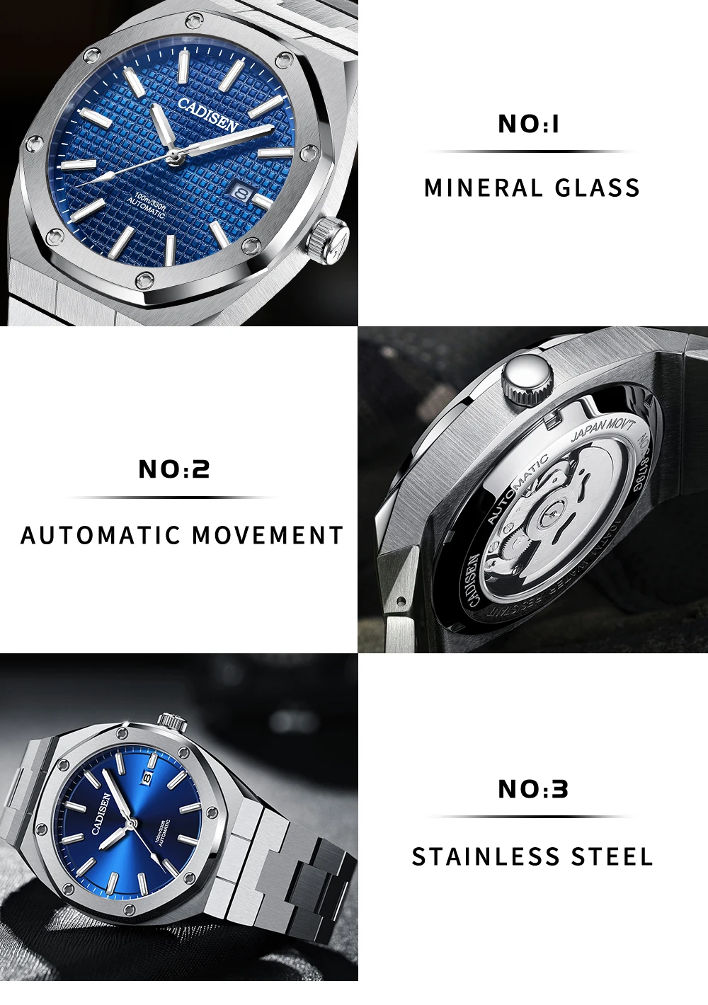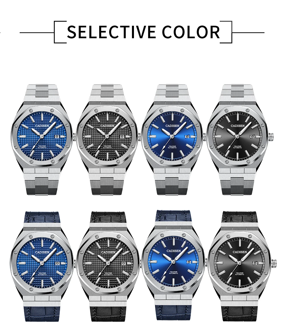 CADISEN мужские часы Роскошные Механические часы люксовый бренд Япония NH35A движение 100 м водонепроницаемые бизнес модные синие наручные часы