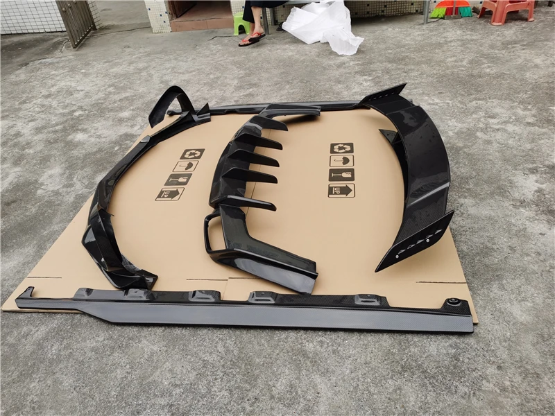 Материал: на 100% абсолютно новый, углеродное волокно, передняя, задняя и боковая юбка, спойлер, диффузор.