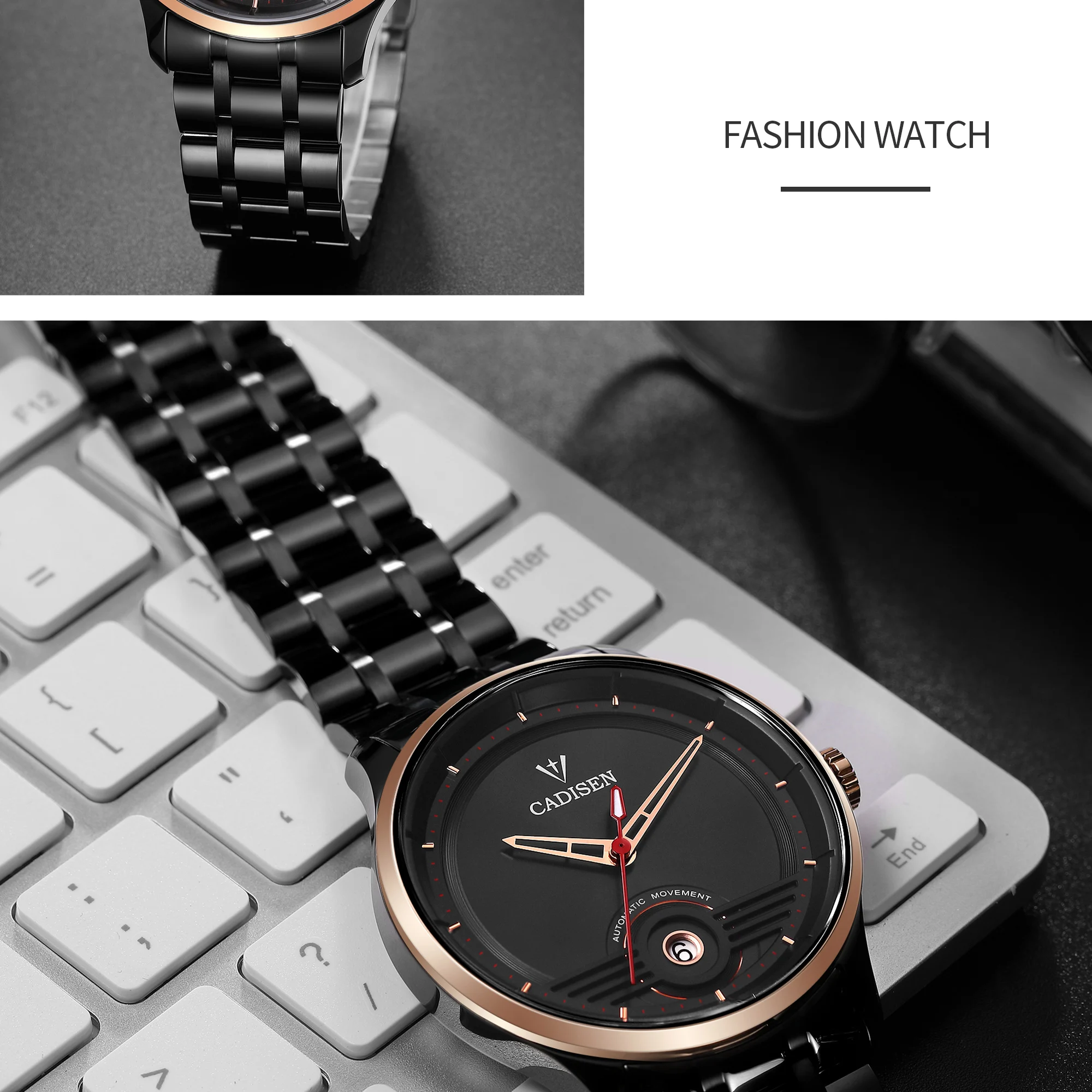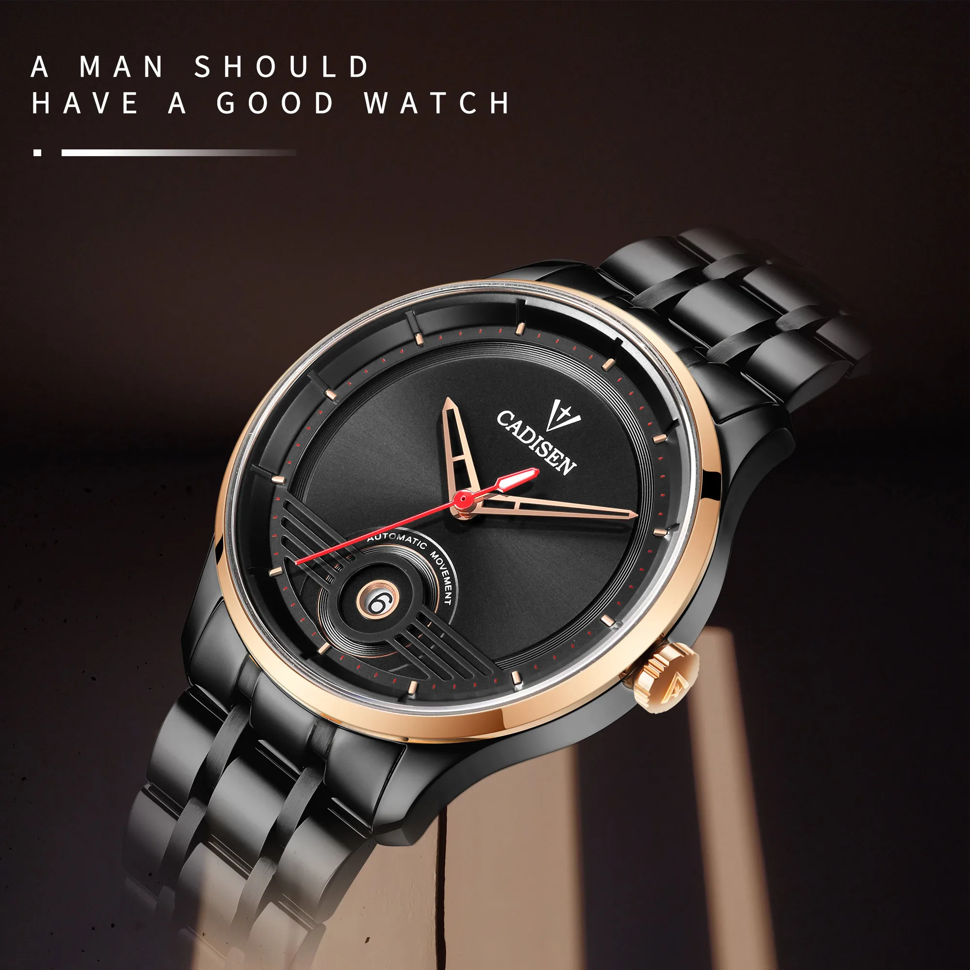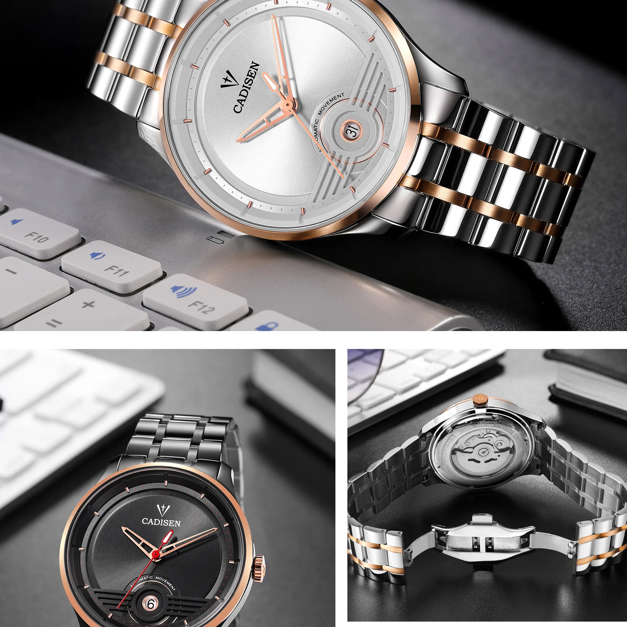 Мужские автоматические механические часы CADISEN, сапфировое стекло из нержавеющей стали NH35A, водонепроницаемые деловые наручные часы для мужчин