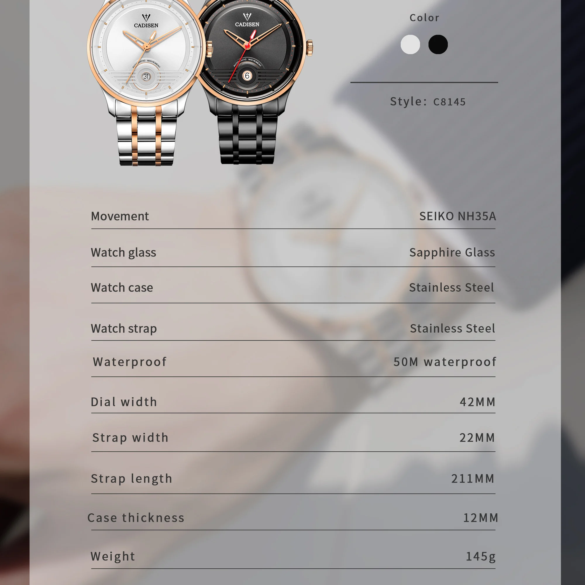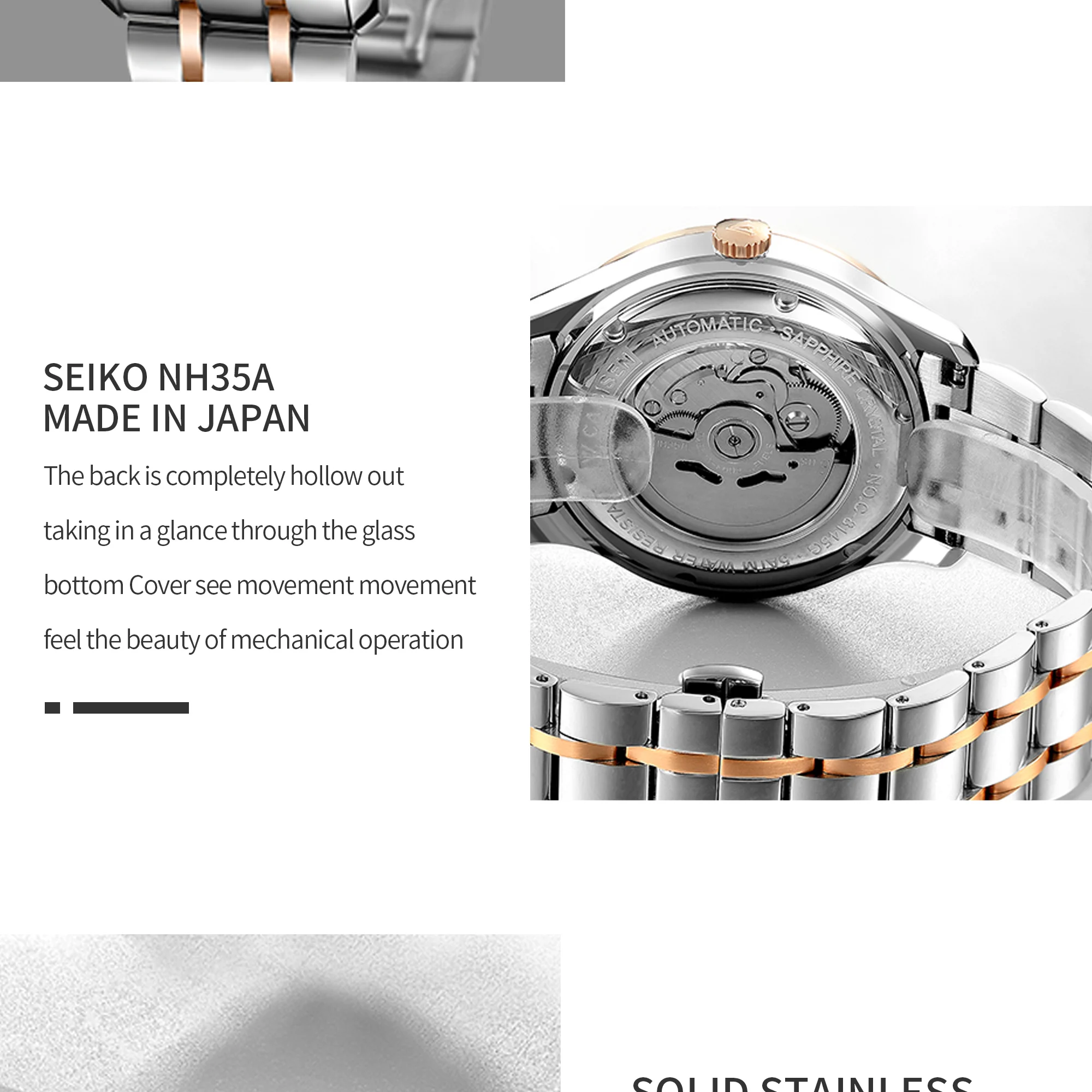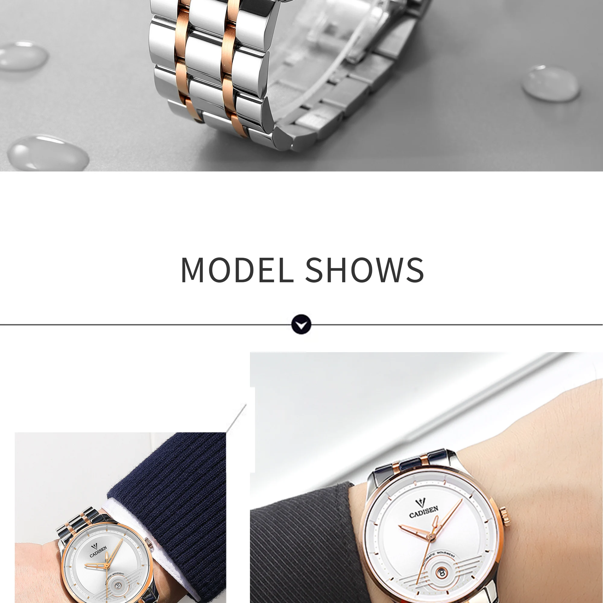 Мужские автоматические механические часы CADISEN, сапфировое стекло из нержавеющей стали NH35A, водонепроницаемые деловые наручные часы для мужчин