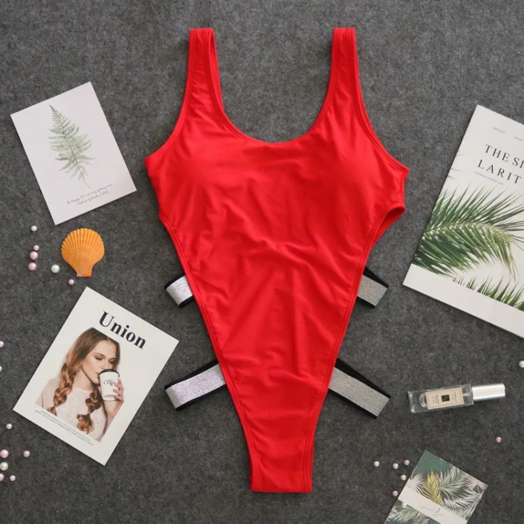 Красный бандажный слитный купальник 2020 пикантный женский купальник с пуш-ап и мягкими чашечками монокини с высоким вырезом и открытой спиной бикини купальный костюм Пляжная одежда Размер: S M L XL