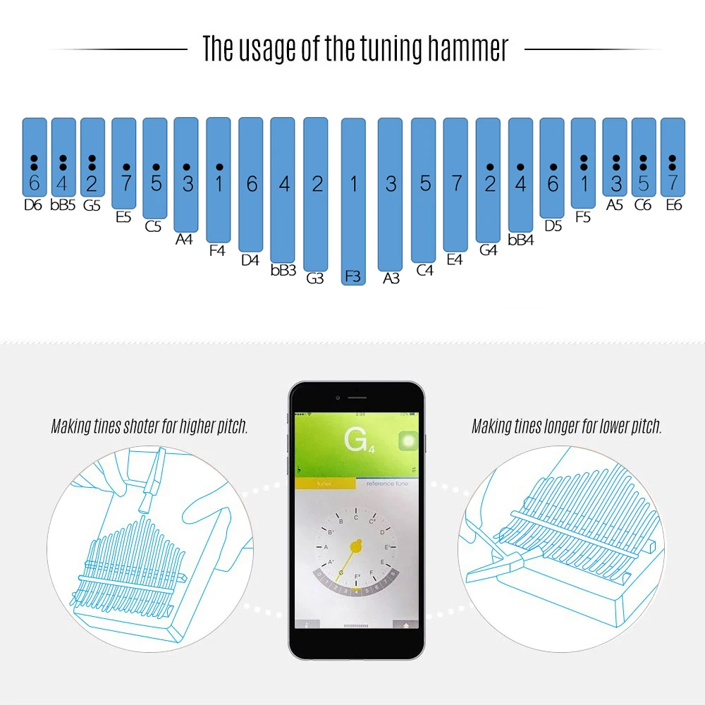 Легко играть, просто держа его в руках и выщипывая зубчики пальцами, чтобы создать четкие и мелодичные звуки; И поставляется с музыкальной книгой и наклейками для быстрого обучения и легкой игры.