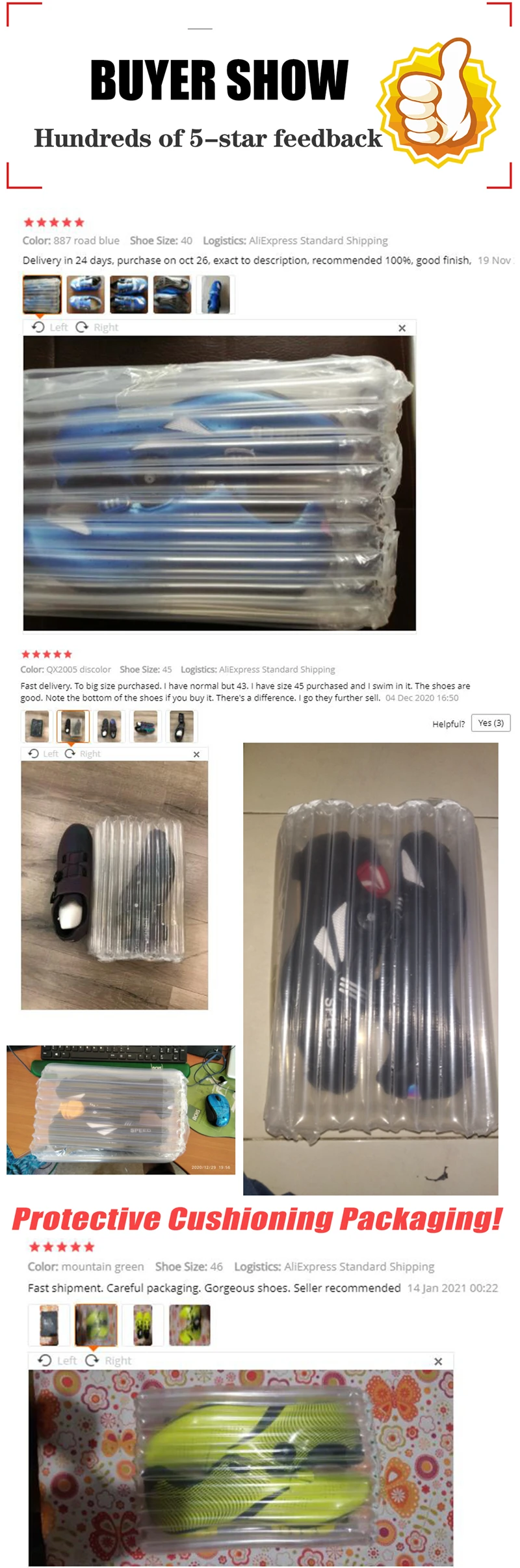 3. Чтобы быстрее пройти ваш местный заказ, мы упакуем обувь «без коробки», но используем защитную колонку высокого качества. Пожалуйста, не беспокойтесь о полноте обуви.