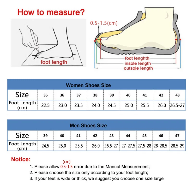 1. Поскольку разные страны и бренды имеют разные стандарты размеров, пожалуйста, внимательно ознакомьтесь со стандартом размеров перед размещением заказа. Если вам нужен размер, пожалуйста, сообщите нам длину вашей стопы.