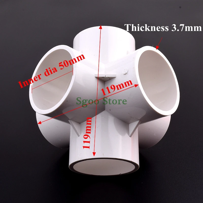 50mm White 3/4/5 Ways Cross 6 Ways Irrigation Tube Fruits Hydroponic Frame Connectors PVC Pipe Three-dimensional Joint Fittings