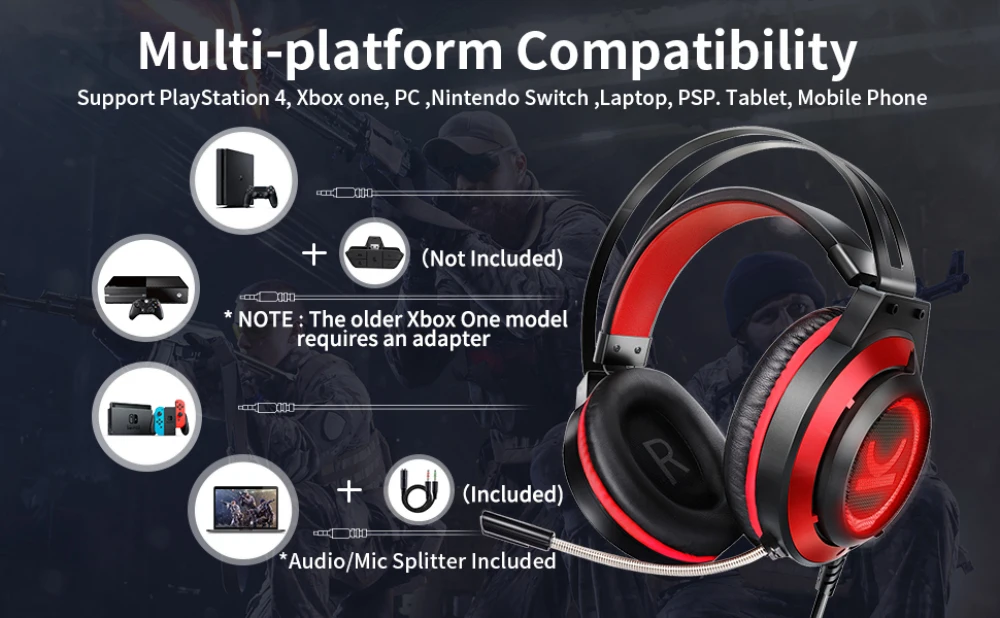 Игровая гарнитура VANKYO: совместимость с несколькими платформами-уникальная конструкция 2 в 1 с раздельными кабелями (Оснащен как USB-портом, так и аудиоразъемом 3,5 мм) Делает эти Игровые наушники широко совместимыми с Xbox One, контроллером PS4, ПК, Nintendo Switch, Nintendo New 3DS LL/3DS, Nintendo 3DS LL/3DS. [Полезные советы: для модели Xbox One требуется адаптер, в комплект не входит].