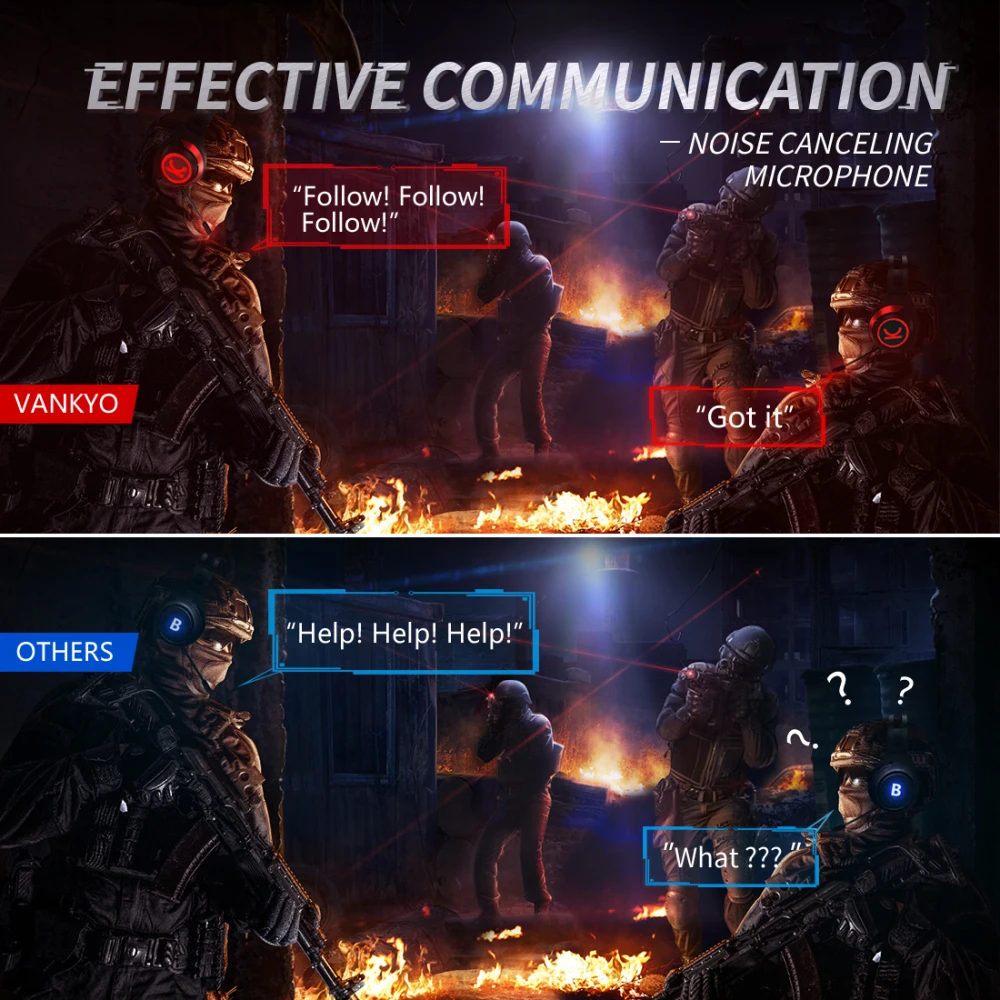 Микрофон с шумоподавлением и линейный контроллер-Игровые наушники VANKYO обеспечивают высококлассное шумоподавление. Гибкий и разумный микрофон можно настроить под любым углом, который вы хотите, и позволит вам общаться с друзьями по команде с кристальной ясностью. Вы можете регулировать громкость или включать/выключать микрофон с помощью простого в управлении контроллера для координации с каждой сценой вашей игры.