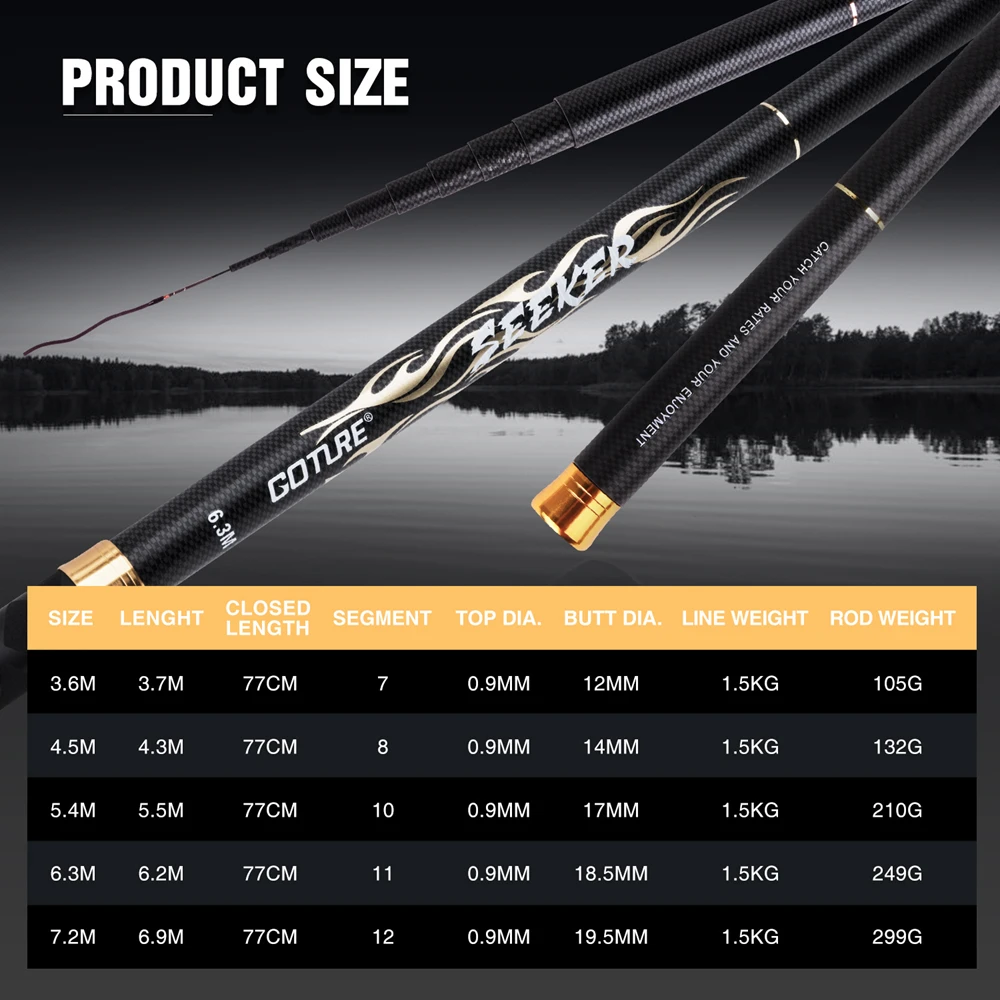 Goture искатель Тенкара подачи стержня 3,6 м-7,2 М ультра-светильник телескопическая спортивный стержень с высоким содержанием углерода для Карп удочка ручной палки