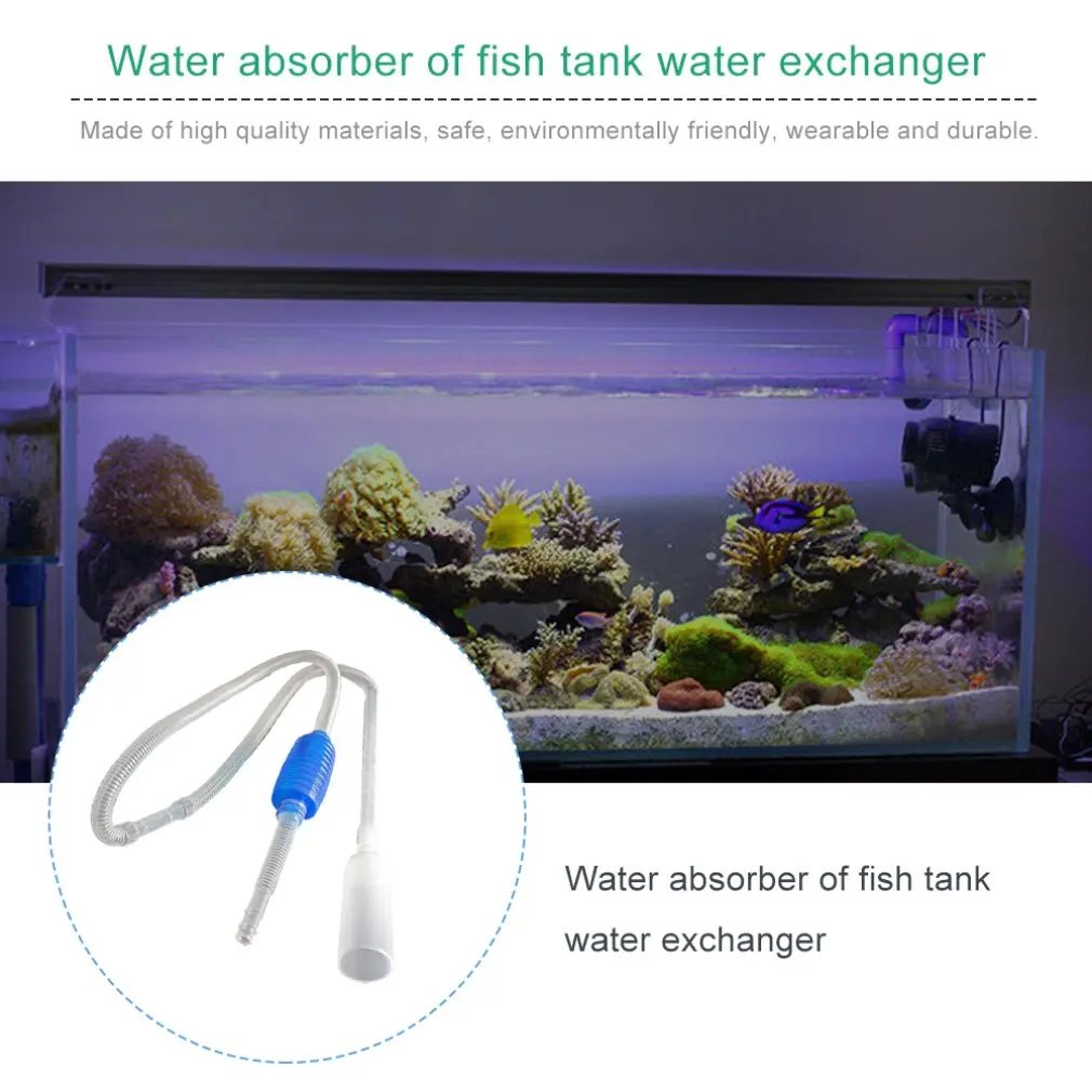 Особенности: 1. Сохранить вашу рыбу здоровой: отличный помощник для изменения воды и очистки гравия. 2. Сохраняет аквариум чистым: дарит вашей рыбе приятную среду обитания. 3. Длинна: ручка traight для легкой обработки, так что вы можете держать руки сухими. Описание: 1. Есть крышка для защиты рыбы/растений от вакуума. 2. Простой в использовании просто выдавите насос, и вода будет течь из резервуара в ведро. Характеристики: Цвет: белый, синий Общая длина: 145 см Жесткая туба Длина: 14,5 см Диаметр выходного отверстия: 0,9 см Посылка включает в себя: 1 * набор труб для замены воды
