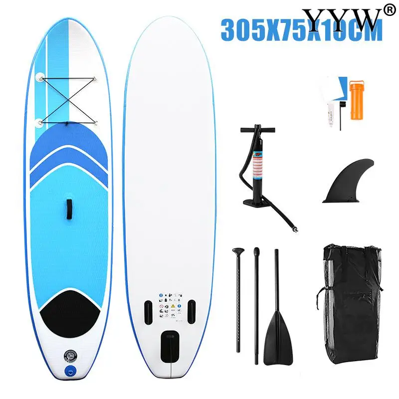 Доска для серфинга из ПВХ, долговечная и портативная, синяя, надувная доска для серфинга, доска для серфинга, каяк, набор для серфинга 305x75x10 см с рюкзаком, поводком, плавниками.