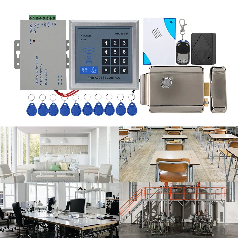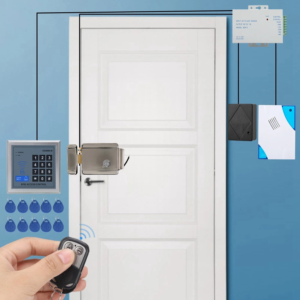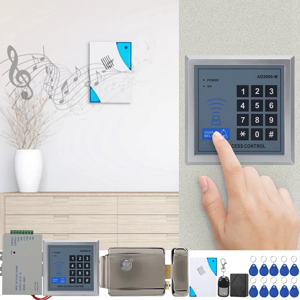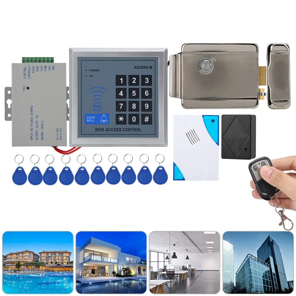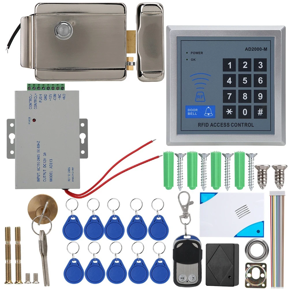 Door Access Control System Electric Lock Remote Control Doorbell Power Supply 10keyfobs AD2000M