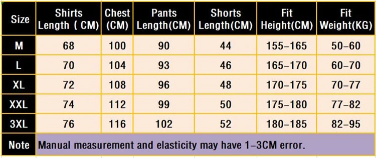 . Размер M, подходит на рост 155-165 см, вес 50-60 кг; Размер L, подходит на рост 165-170 см, вес 60-70 кг; Размер XL, подходит на рост 170-175 см, вес 70-77 кг; Размер XXL, подходит на рост 175-180 см, Вес 77-82 кг; Размер 3XL, подходит на рост 180-185 см, вес 82-95 кг.