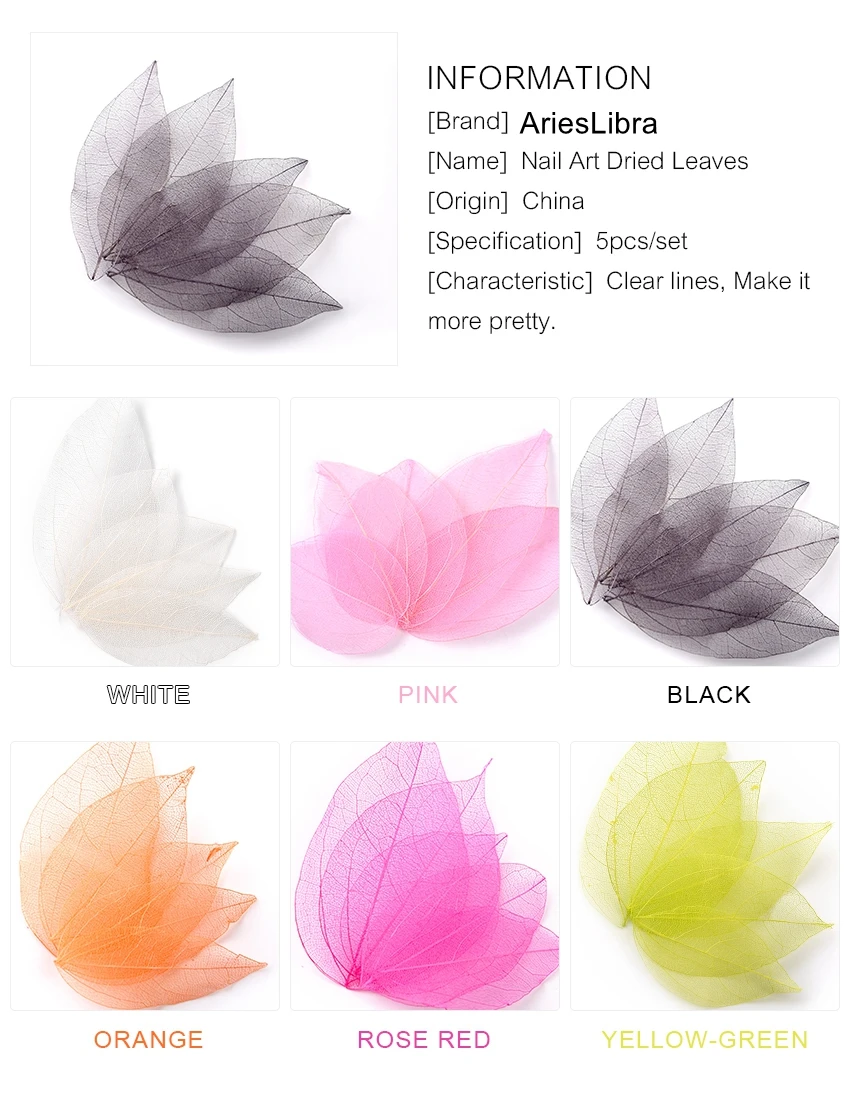 DescriptionСпецификация: Тип: украшение для дизайна ногтей Материал: натуральные листья Посылка ция: 1 упаковка Украшения для ногтей с цветами Легко использовать: 1. Подготовьте ногти с помощью УФ-базы и высушите их под УФ/светодиодной лампой. 2. Нанесите цветной УФ-гель (не выдерживать!) 3. Нанесите листья на ногти с помощью пинцета. 4. Высушите его под УФ/светодиодной лампой. 5. Закройте его УФ-верхним слоем и просушите под УФ/светодиодной лампой.