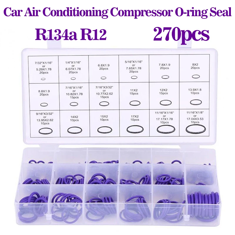 ·Резиновые уплотнительные прокладки разных размеров 270 шт. предназначены для большинства кондиционеров автомобиля.