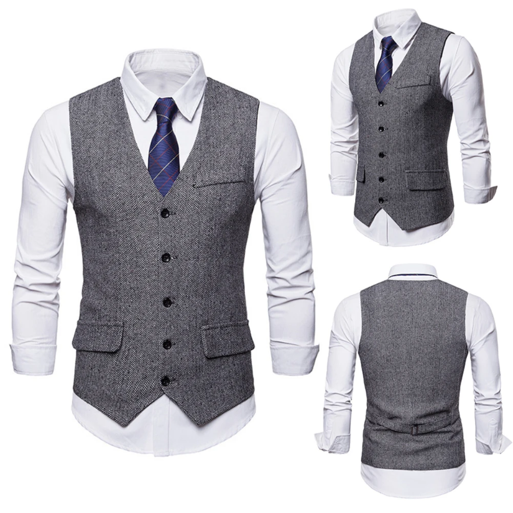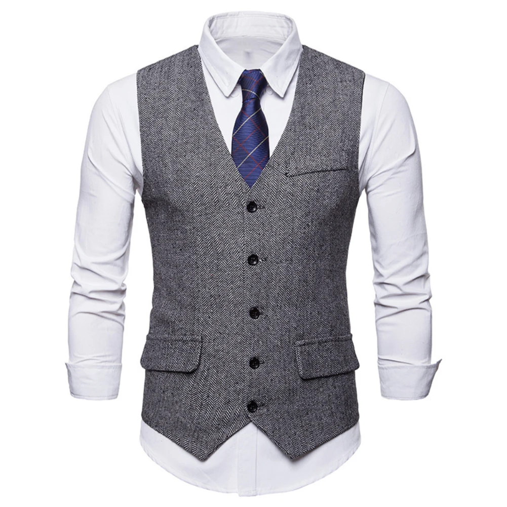 Мужская безрукавка с v-образным вырезом, однобортный жилет в елочку, деловой костюм, жилет