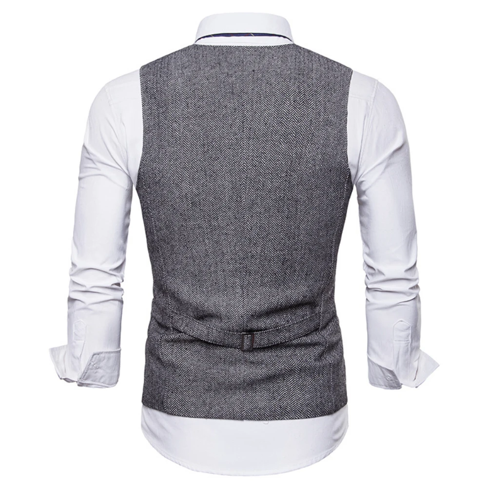 Мужская безрукавка с v-образным вырезом, однобортный жилет в елочку, деловой костюм, жилет