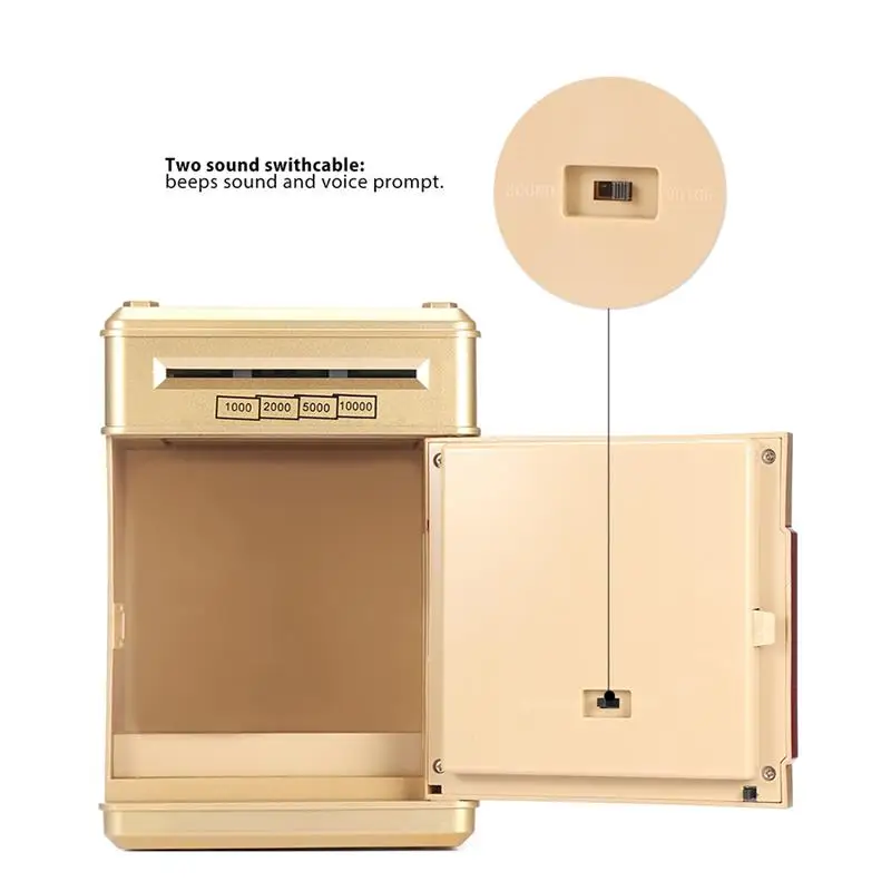 С паролем, голосом, в дополнение к экономии денег, но и для установления целей экономии, финансового планирования. Может использоваться для хранения игрушек, украшений, банковских книжек и т. д. в отверстие для монет можно положить монеты или бумажные деньги.