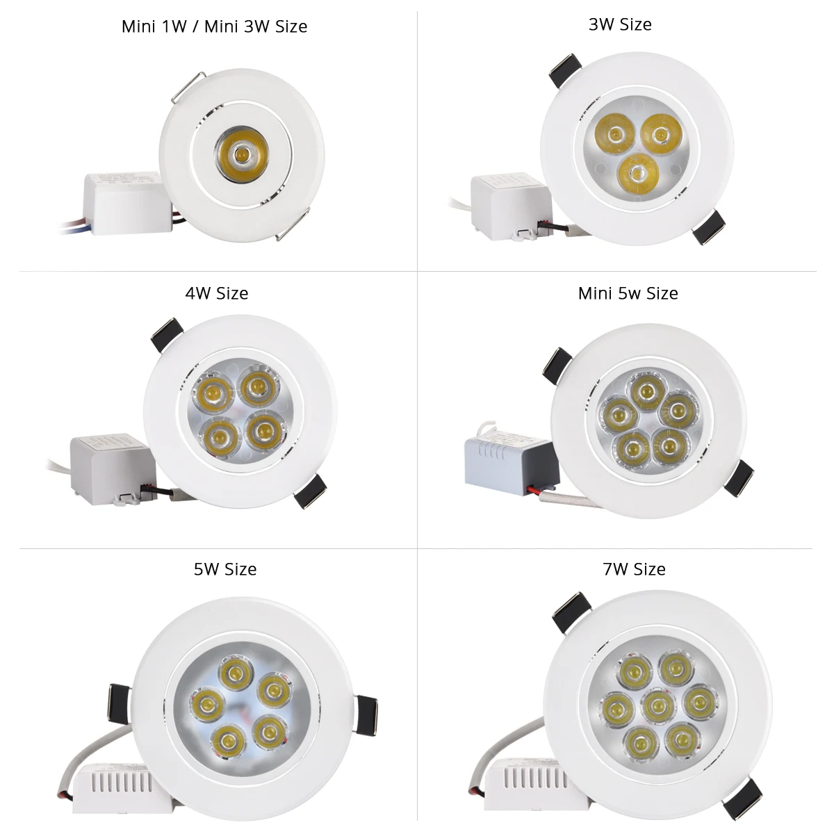 1 шт. вниз светильник светодиодный 1 Вт 3 Вт 4 Вт 5 Вт 7 Вт Точечный светильник с регулируемой яркостью IP44 Встраиваемая Светодиодная лампа Светодиодный светильник регулируемый AC110V 220 В