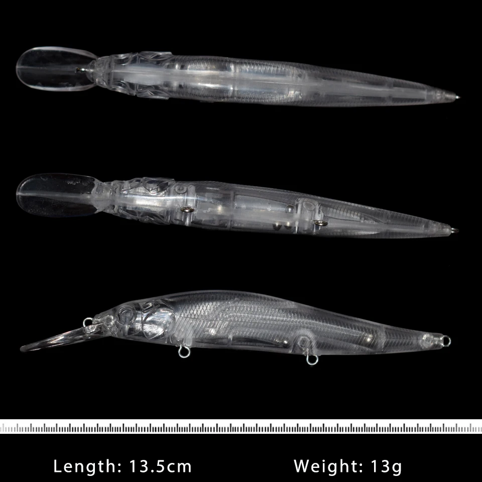 Ccltba 20 шт./лот блесна, приманка для рыбалки, прозрачные приманка Жесткий корпус пустой 13,5 см 13 г Джеркбейт плавающей жесткая рыболовная наживка воблер Неокрашенный