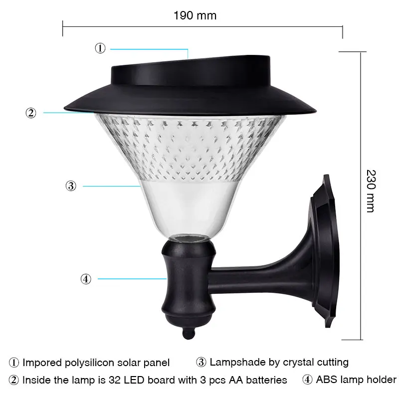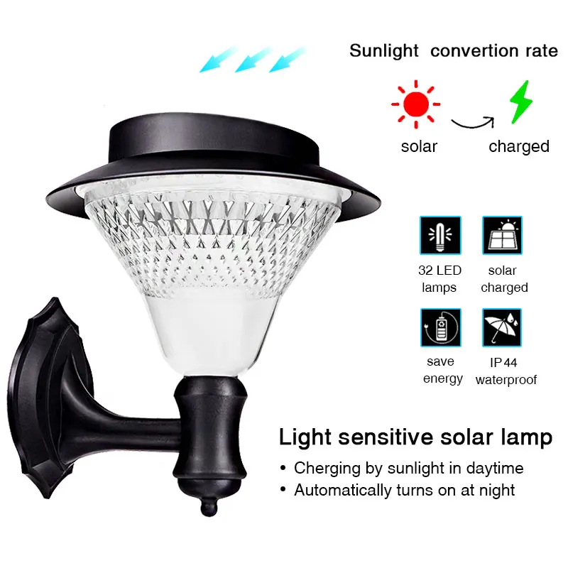 Светодиодный солнечный светильник 32 светильник садовый настенный светильник Настенный светильник датчик наружный Солнечный уличный светильник Аккумуляторный светильник белый светильник