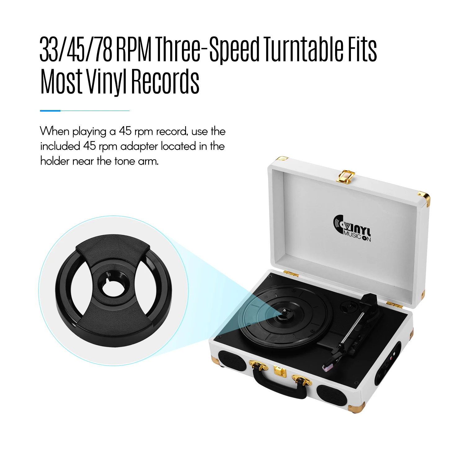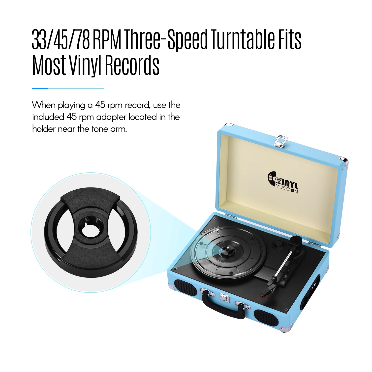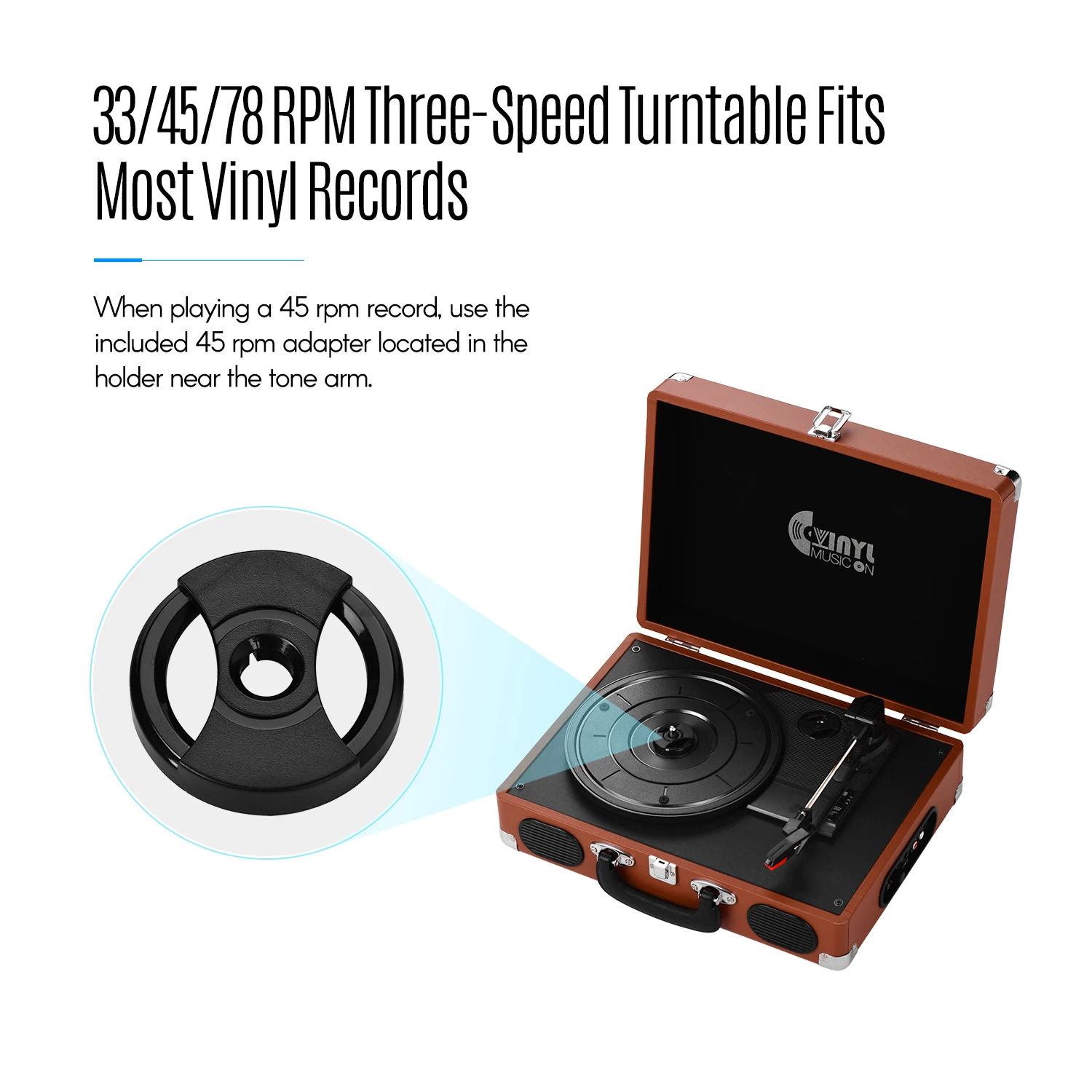 Три-скорость Нью-Йорк (33/45/78 об/мин) Проигрыватель подходит практически для всех ваших виниловых пластинок и воспроизводит вашу любимую альбомах.