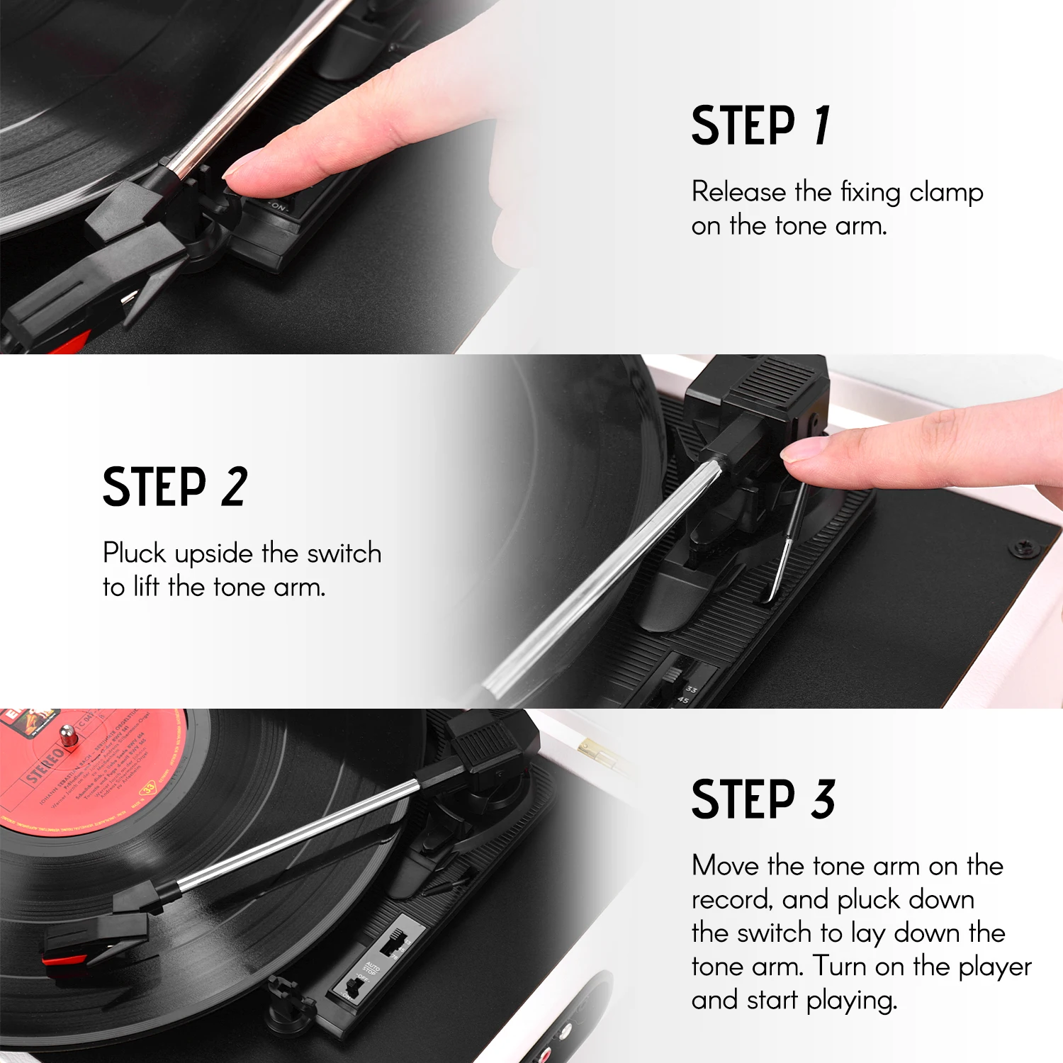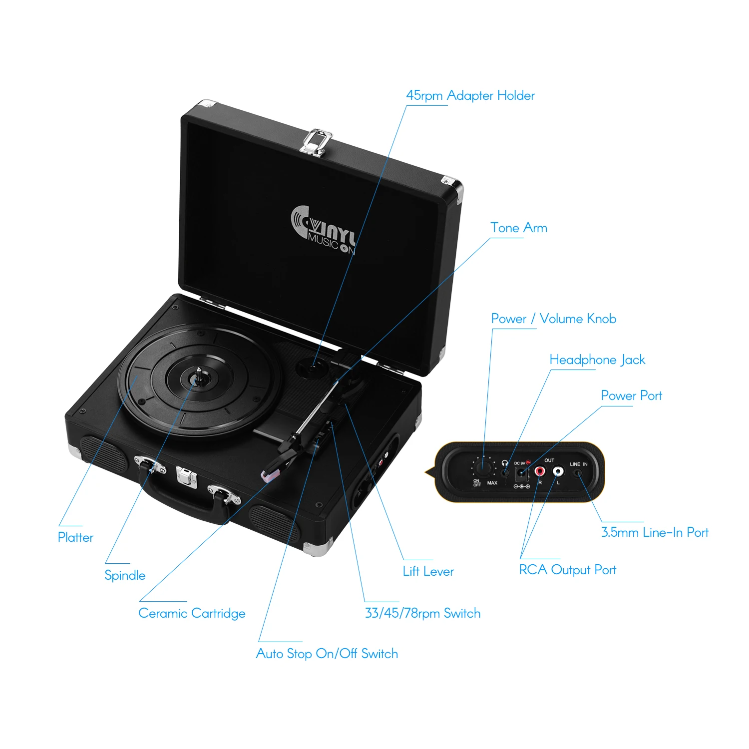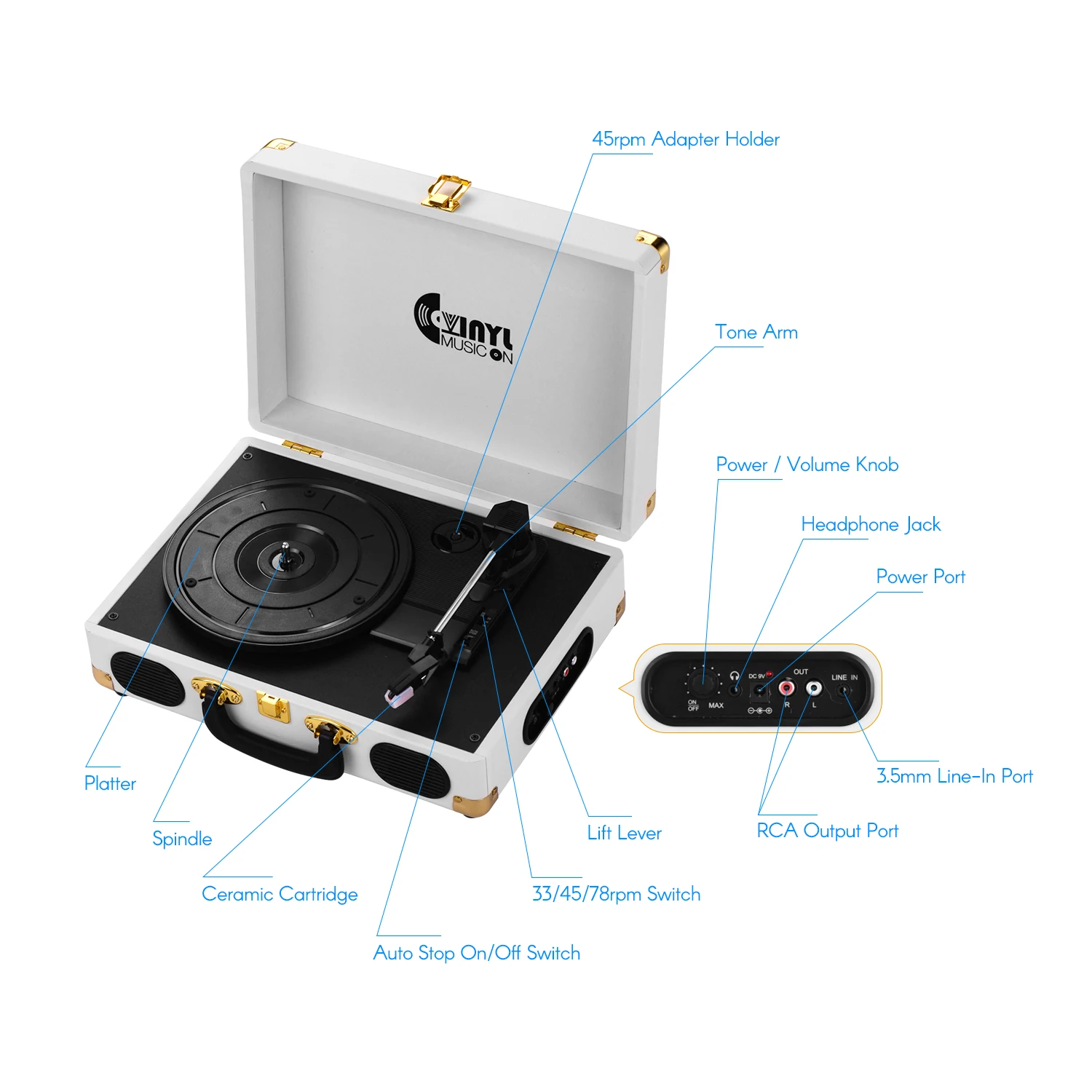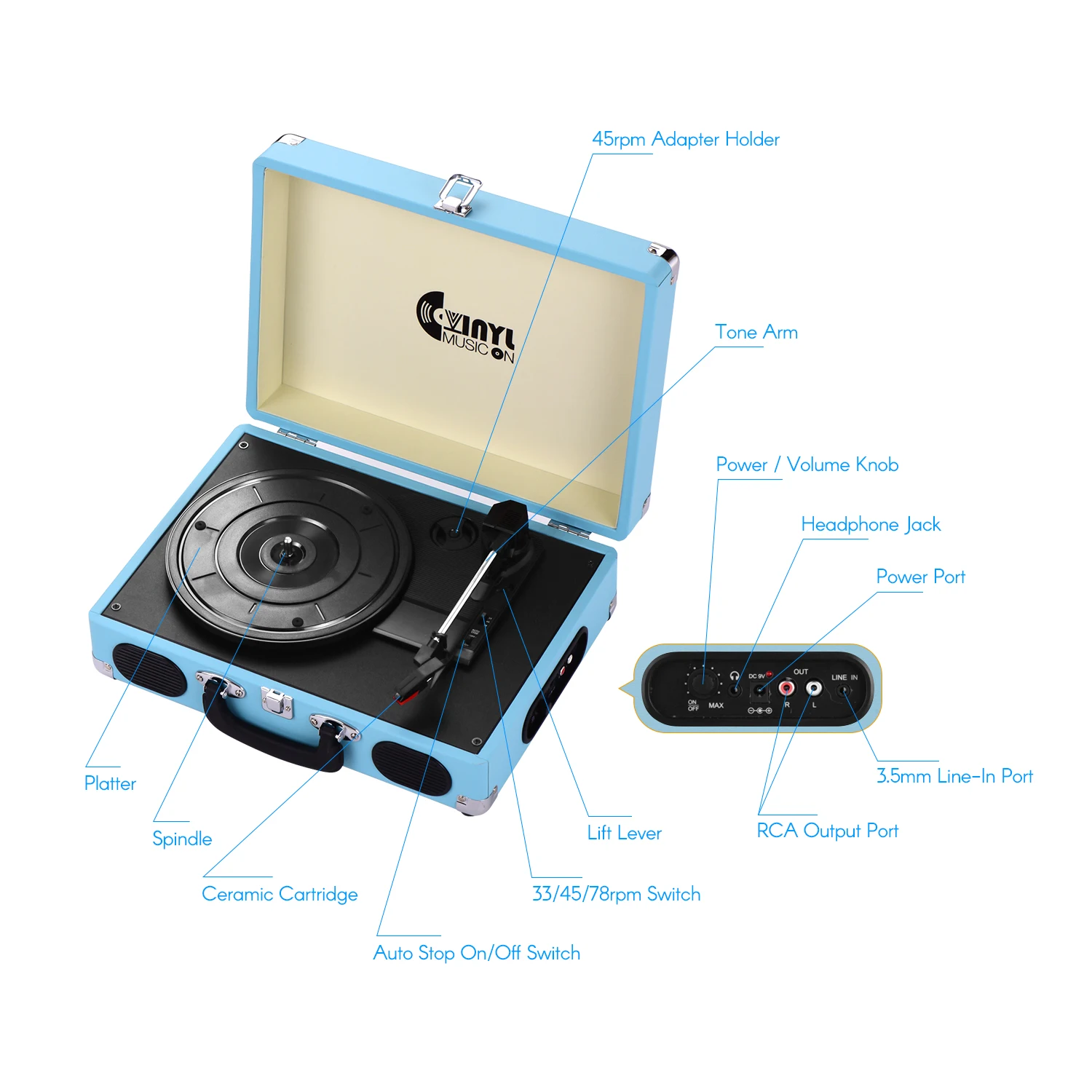 Три-скорость Нью-Йорк (33/45/78 об/мин) Проигрыватель подходит практически для всех ваших виниловых пластинок и воспроизводит вашу любимую альбомах.