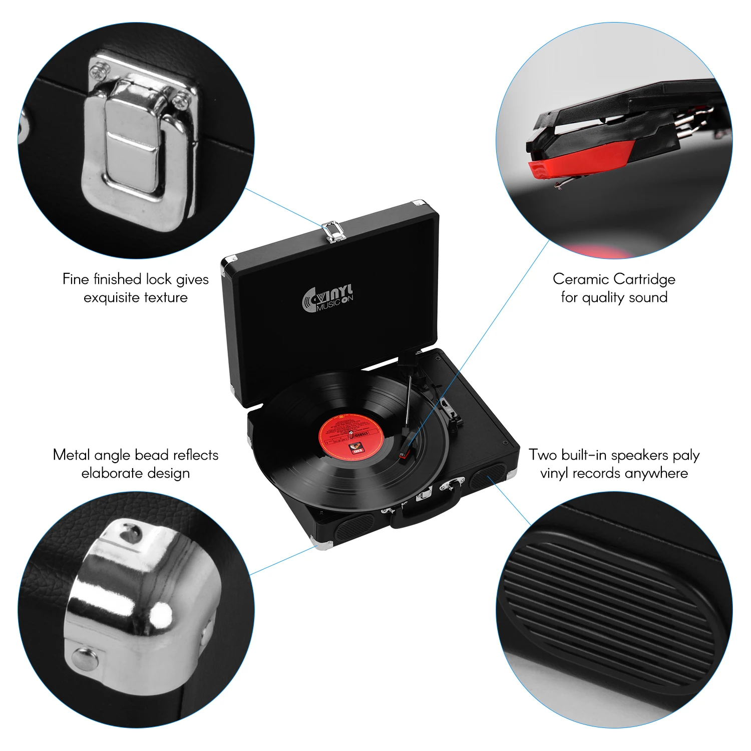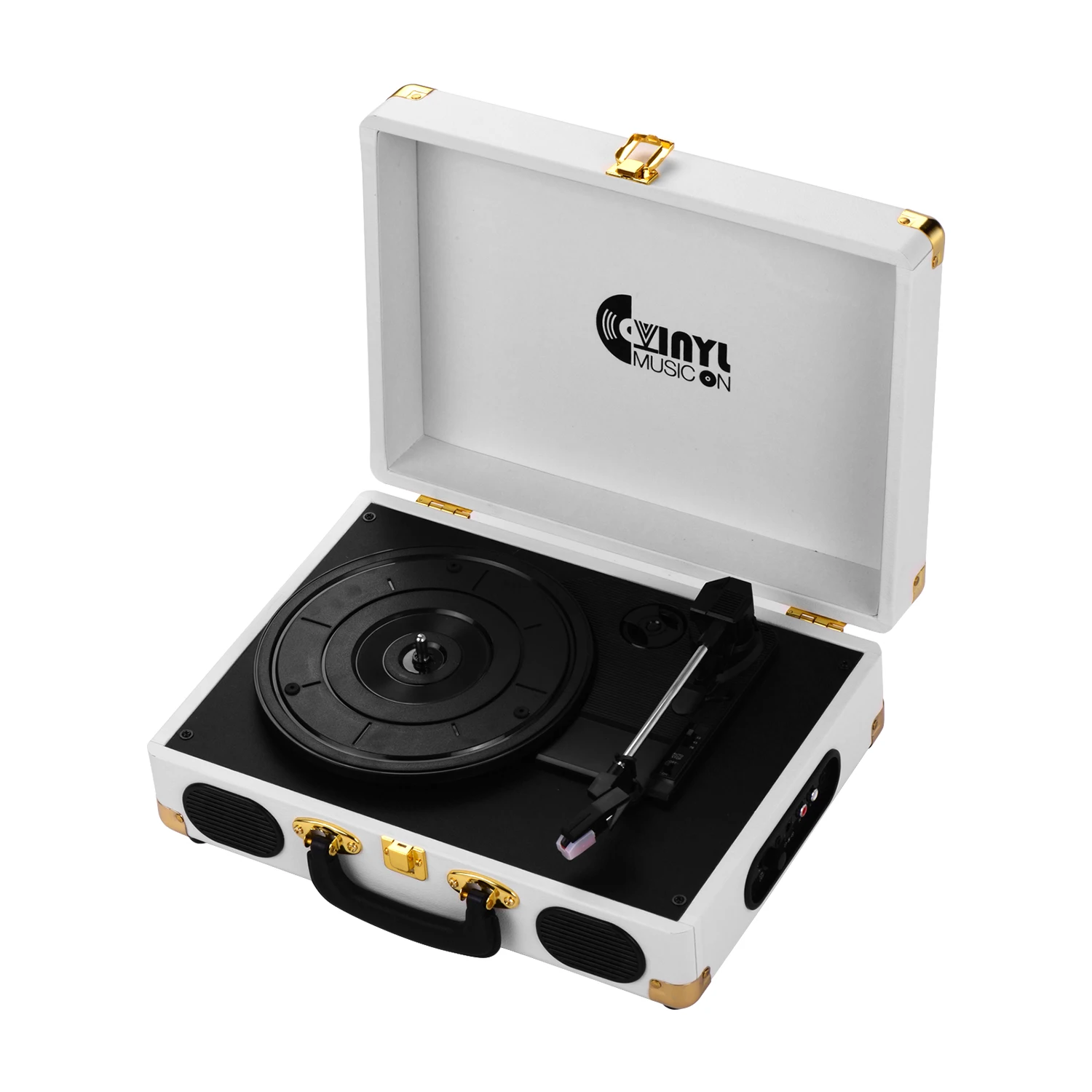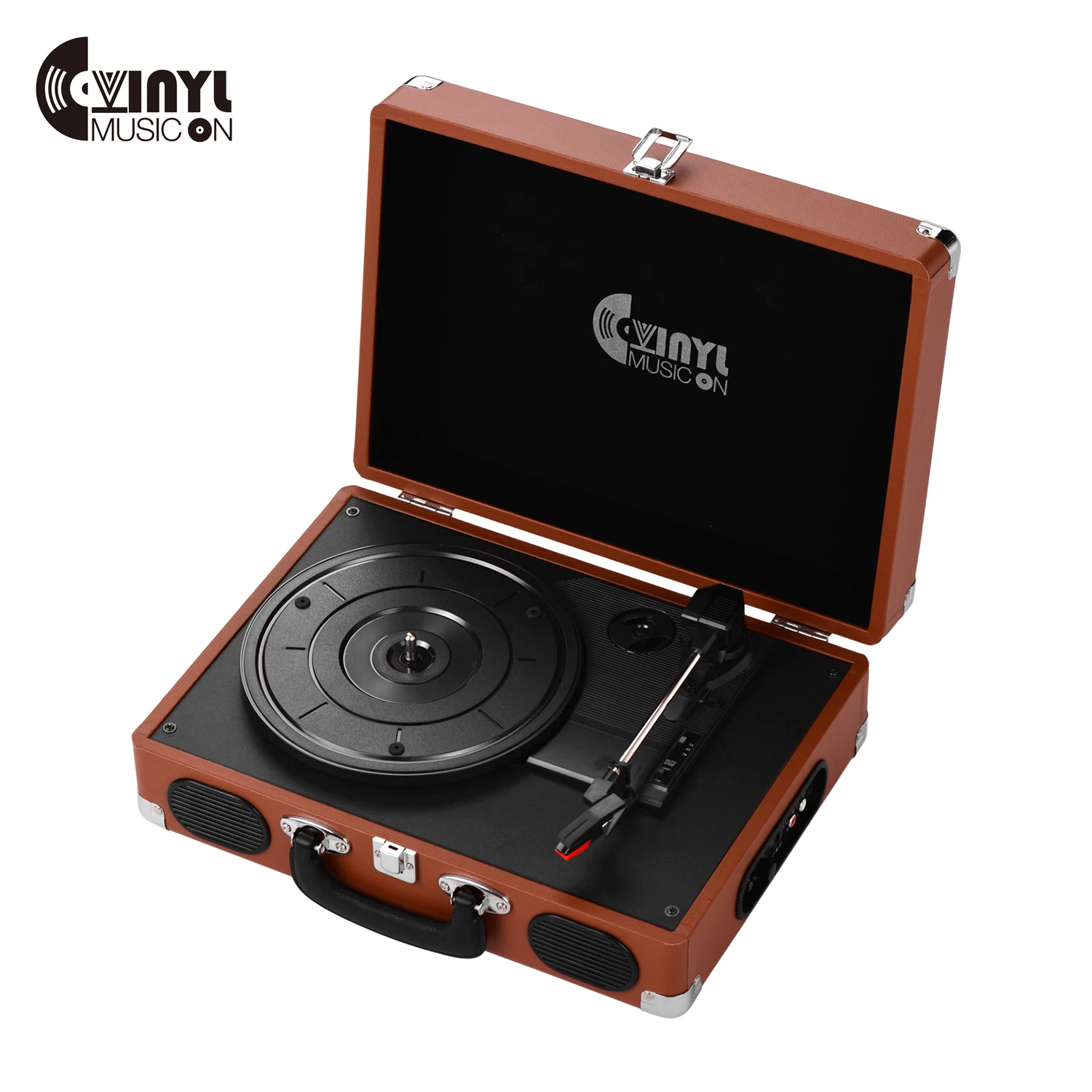 Винтажный дизайн даН для проигрывателя виниловых дисков Brifecase, что делает Проигрыватель виниловых дисков классическим и портативным.