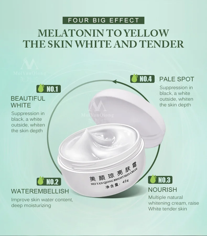Благодаря богатым ингредиентам для отбеливания и удаления пятен, он эффективно снижает активность тирозиназа, постоянно разлагает меланин и предотвращает появление темных пятен, хлоазмы, веснушек и солнечных пятен. Продолжительное использование может предотвратить ультрафиолетовые пятна печени, веснушки, поддерживать здоровую кожу с прозрачным чувством.