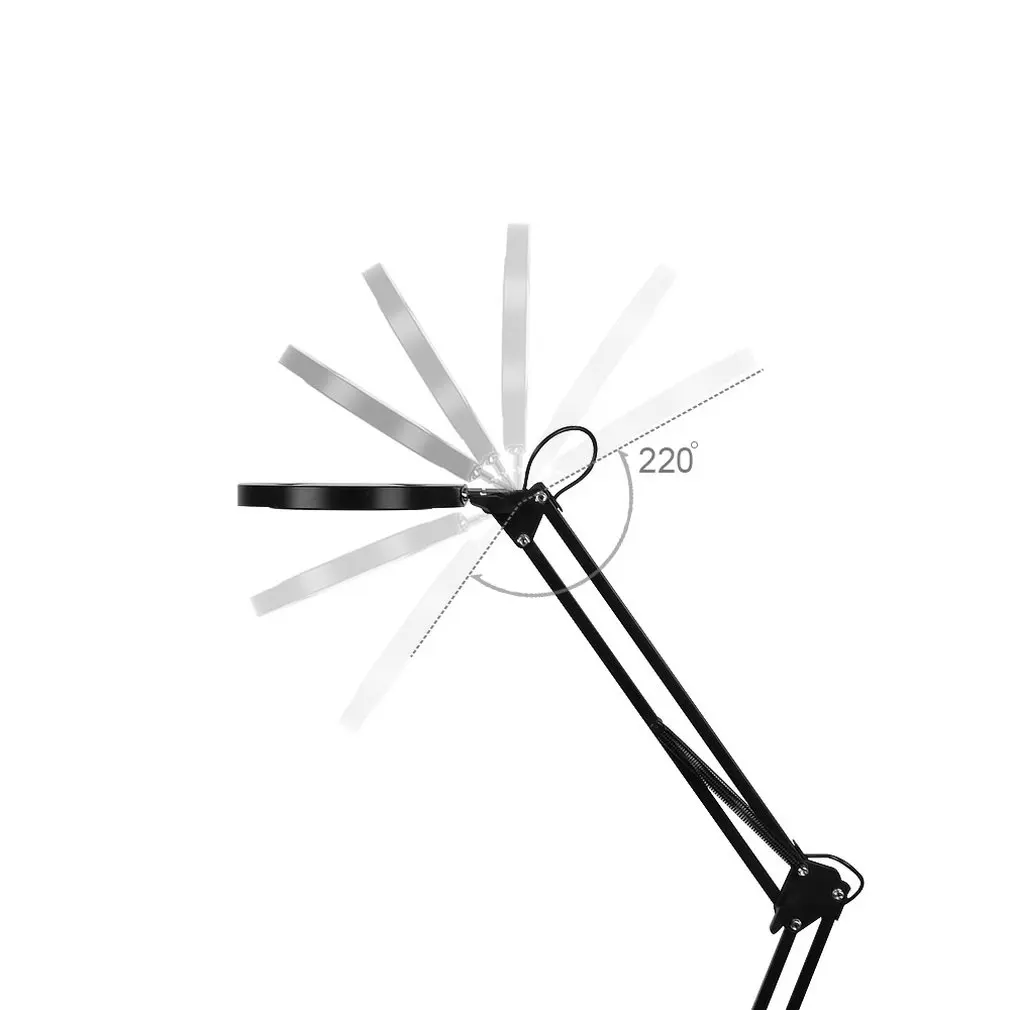 Особенности: 1. Прочный металлический зажим: может быть закреплен на любой плоской поверхности, которая составляет менее 2,56 ''/6,5 см (макс.) толщиной. Экономит место, удобно крепится к столу, верстаку. 2. Регулировка: головку лампы можно регулировать на 220 ° вверх и вниз, и поворот на 360 °. 33 см + 33 см выдвижные длинные руки, 180 °/135 ° можно регулировать. 3. Увеличительное стекло с Светодиодный светильник: Цветовая температура светодиодный светильник может быть скорректирована в 3 шага и яркость может быть скорректирована в 11 шагов, он может удовлетворить различные рабочие среды. Описание: Подходит для чтения рабочих/компьютерных досок/ювелирных изделий/ремесленных любителей/сварочных работ/ухода за кожей красоты, он может быть использован универсально. Характеристики: Цвет: черный Модель: 5x1 Увеличение: 5 Материал: алюминиевый сплав Посылка включает в себя: 1 основание из сплава 1 X увеличительное стекло 1 мини-гаечный ключ