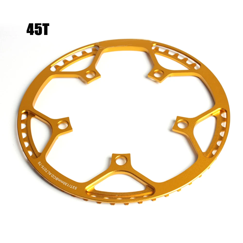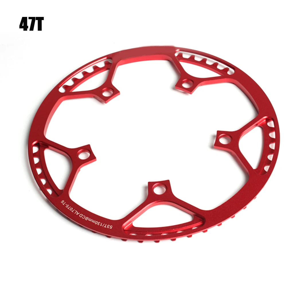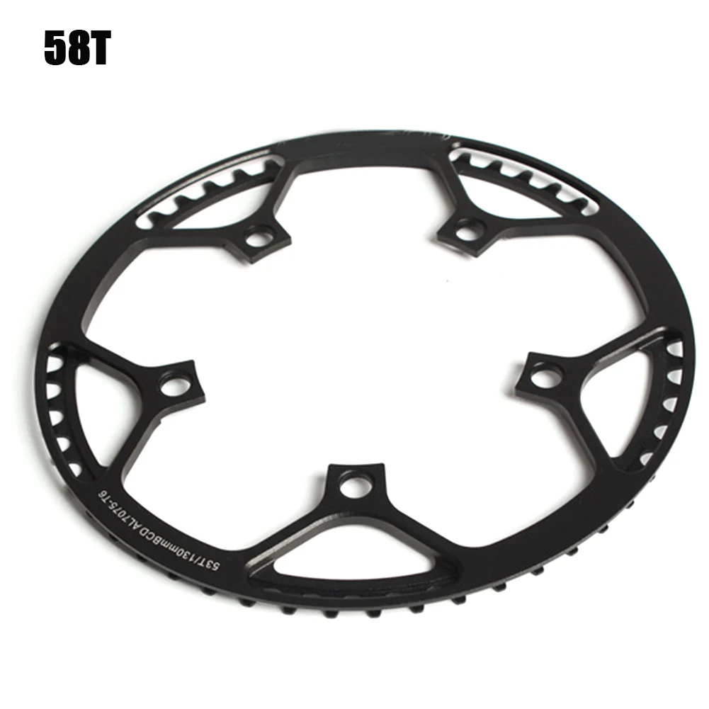 4.Размер односкоростного кольца: скорость-45T 47T 53T 56T 58T; Пожалуйста, определите, что ваша спецификация кривошипа BCD составляет 130 мм перед покупкой.