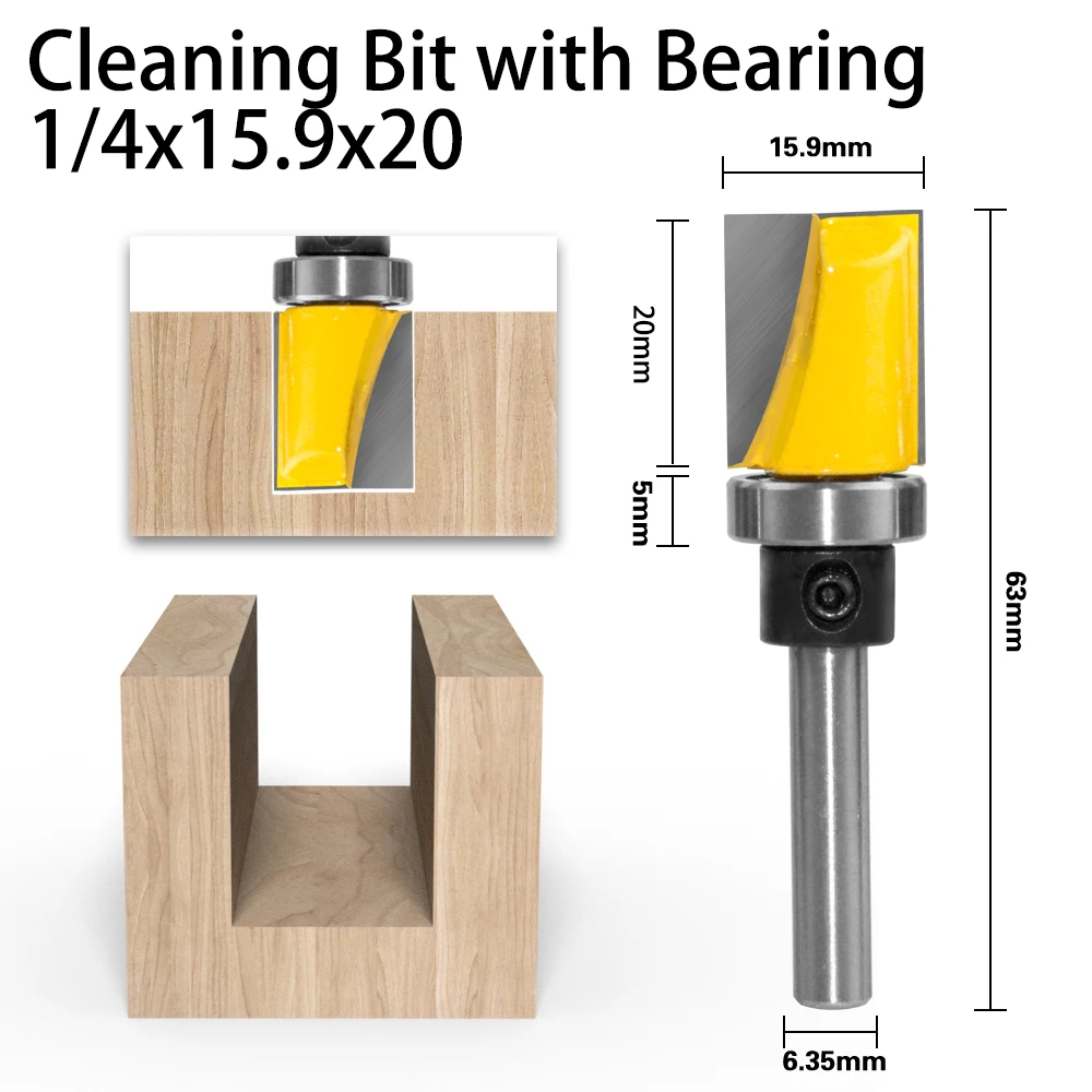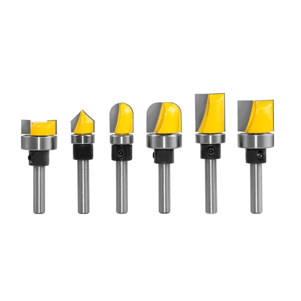 1PC 1/4" 6mm Shank Pattern Bit Flush Trim Bit Straight Bit with Bearing Hinge Mortising Router Bit Wood Trimmer Cutter