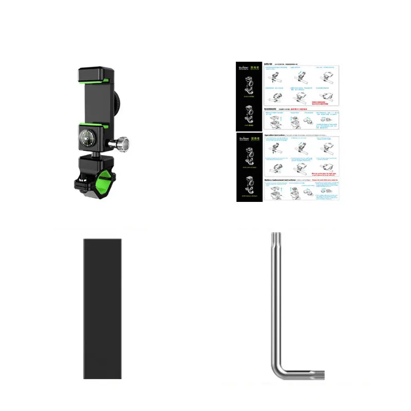 Пять дизайн хит продаж: 1. Мобильный телефон с защитой от отсоединения, Быстрая блокировка одной кнопкой. 2. Конструкция противоугонного винта для предотвращения кражи кронштейна. 3. Дизайн вспышки индикатора может не только осветить, но и предостеречь для безопасности. 4. Дизайн компаса, забавный и практичный. Вращение шаровой головки на 5,360 градусов, более удобная для верховой езды фотография! Регулировать ширину 5-8,5 см для 4-6 дюймов мобильный телефон! Распределите инструменты и инструкции одновременно!