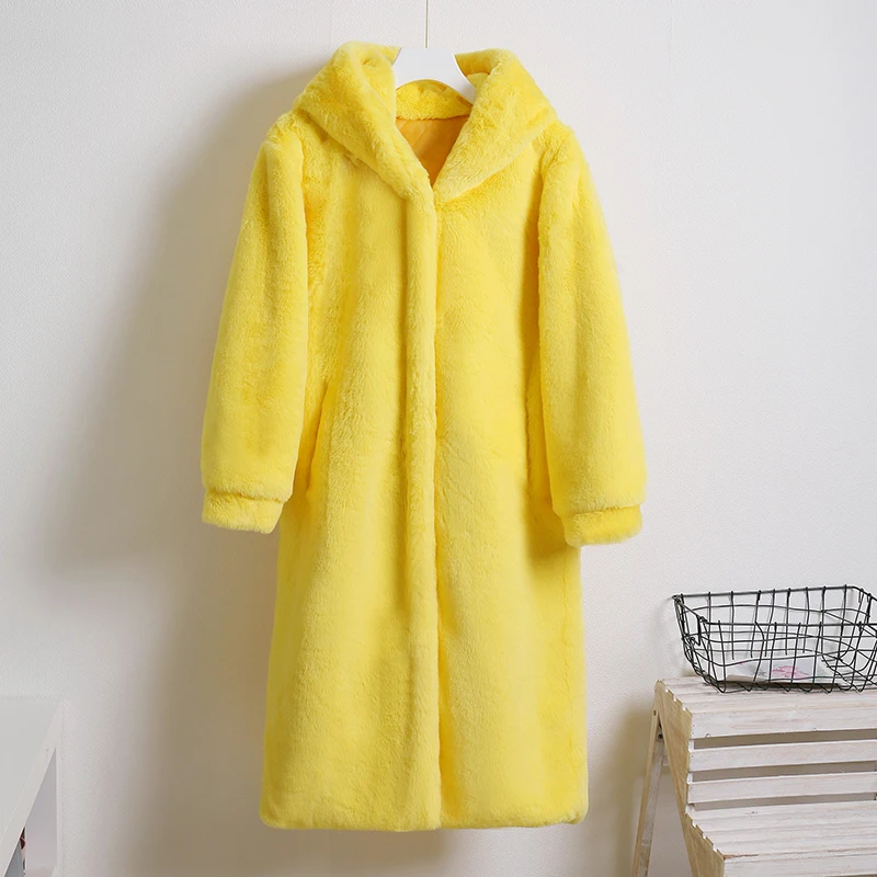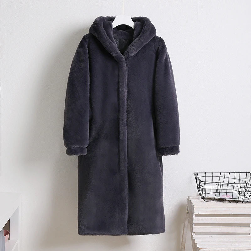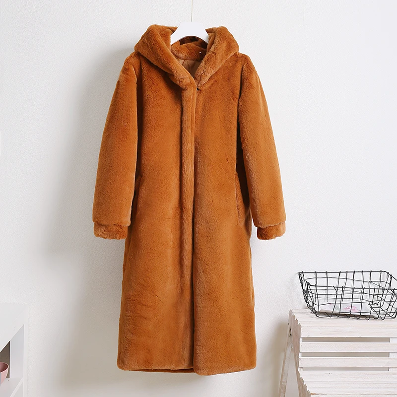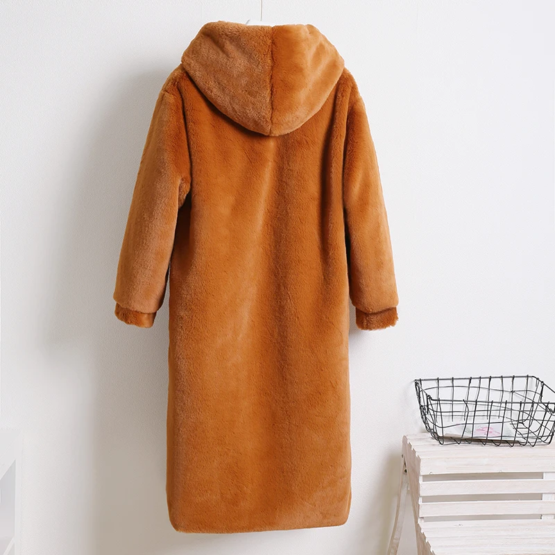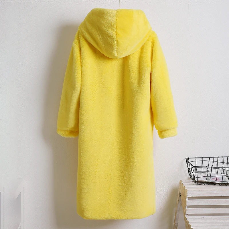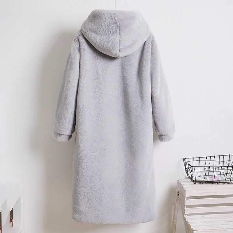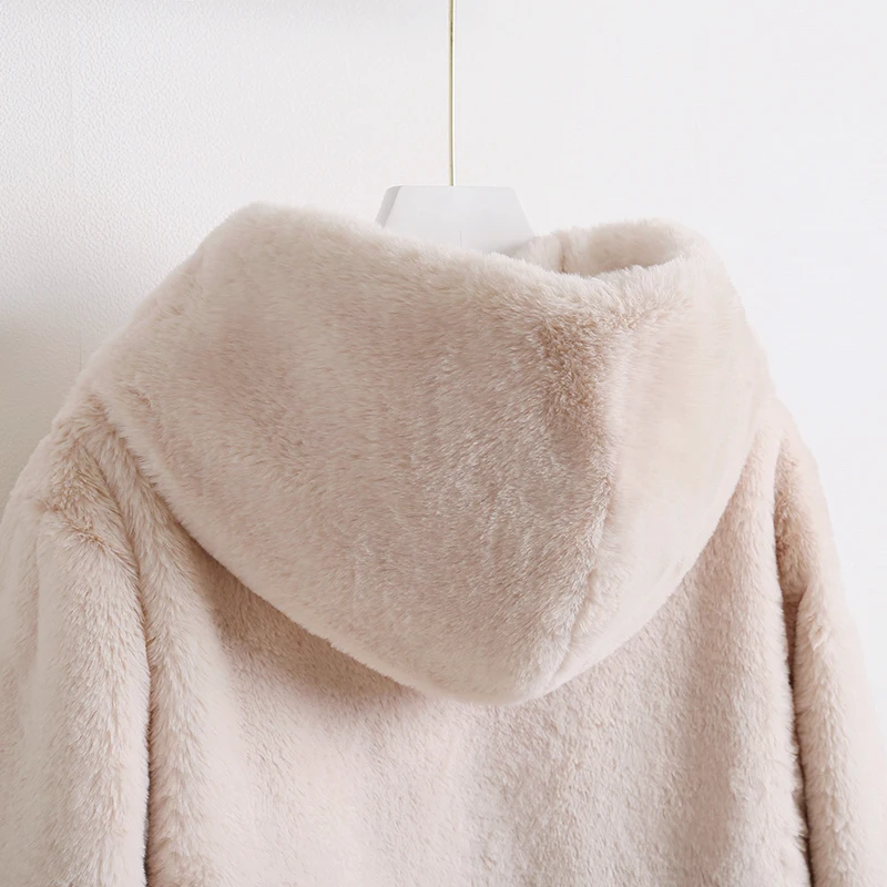 Женское пальто из искусственного меха норки Macaron, зимнее теплое однобортное пальто с капюшоном, повседневное мягкое пальтоUSD 55,75/Шт.