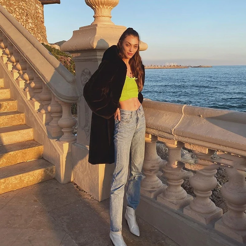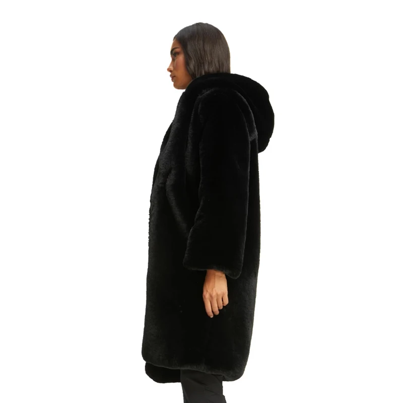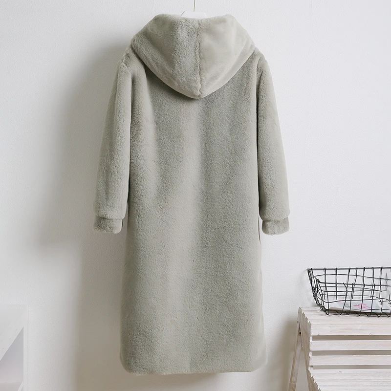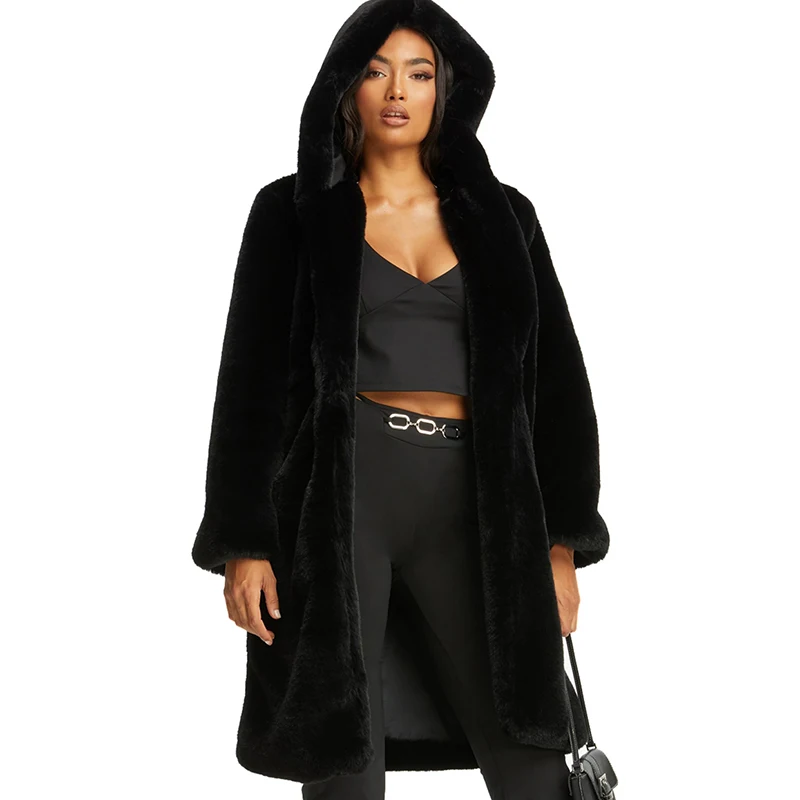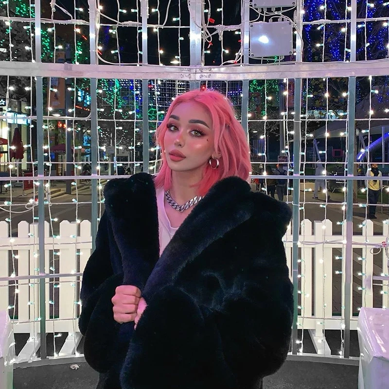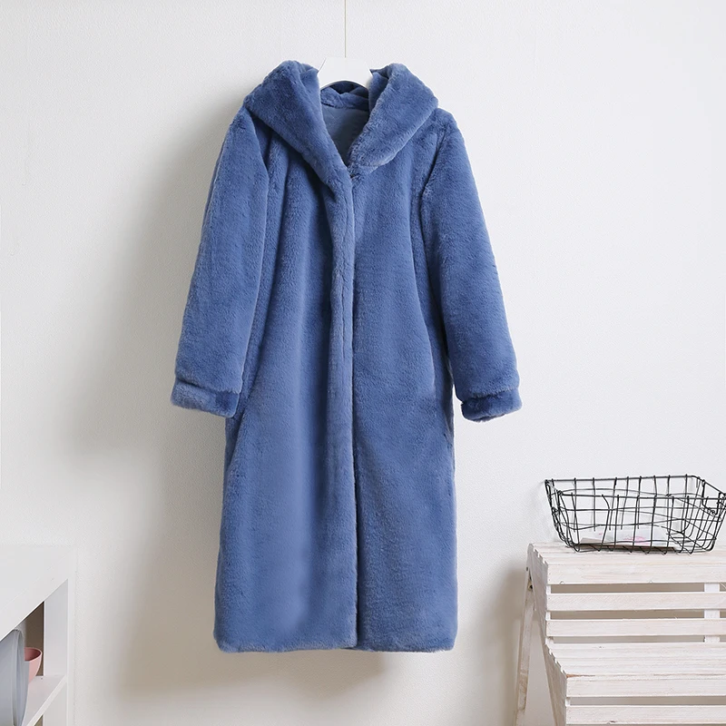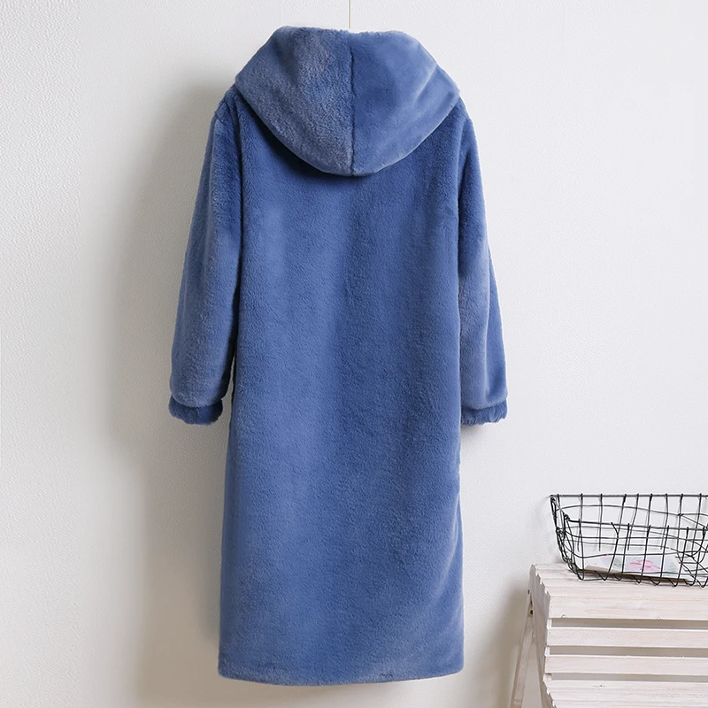 Женское пальто из искусственного меха норки Macaron, зимнее теплое однобортное пальто с капюшоном, повседневное мягкое пальтоUSD 55,75/Шт.