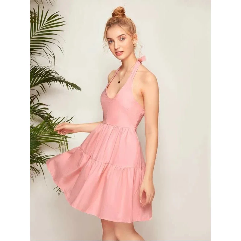 2020 новое платье женское летнее платье Холтер Бохо сексуальное с v-образным вырезом однотонное без рукавов Повседневное платье пляжный сарафан размера плюс