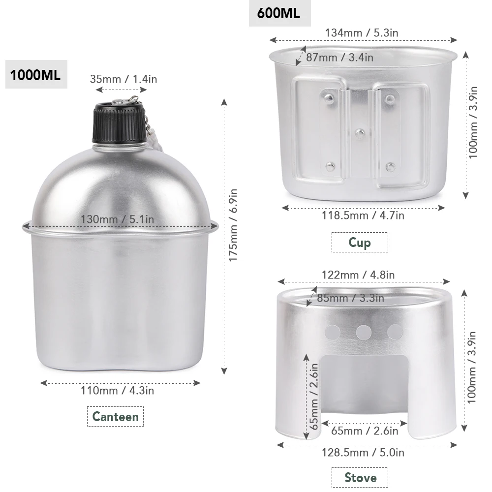Этот набор посуды для отдыха на природе включает столовую объемом 1000 мл, чашку объемом 600 мл, дровяную печь, идеально подходит для кемпинга, пеших прогулок, выживания и приключений на природе.