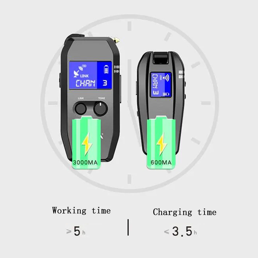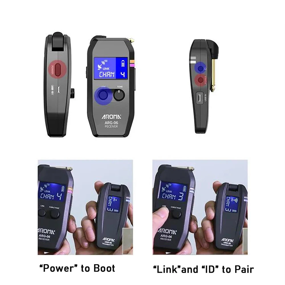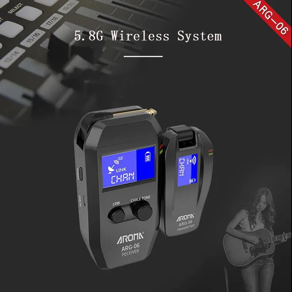 5.8GHz uncompressed wireless signal transmission, low noise and latency, work with both passive and active pickup. 4 sets of audio transmission can be used at the same time.
