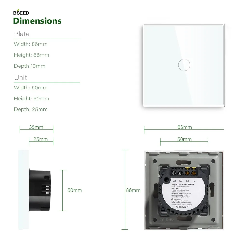 1. Супер чувствительность-просто нужно слегка прикоснуться к нему.2. Доступны популярные цвета: черный, белый, золотистый.3. Кнопка будет светиться ночью, что облегчит поиск.4. Водонепроницаемость и устойчивость к царапинам. Защита от поражения электрическим током.5. Различные тестирования качества во время производства, чтобы гарантировать, что каждый переключатель хорошо работает до его доставки клиентам.6. Элегантный вид, отлично подходит ко многим современным стилям декора. Может применяться для гостиной, спальни, коридора, кухни, ванной комнаты, офиса и так далее.Описание продукта:Название бренда:BSEEDРазмер:86x86x35 ммЦвета:Черный, белый, золотойТок:10АМатериал:Сплав + Хрустальное стеклоСертификация:Ce, CCC ,RoHSМеханический срок службы:100000 разРабочее напряжение:110-240 в пер. токаОтносительная влажность:10% ~ 93%Мощность: 300ВтПримечание:Вам придется отключить питание и во время установки.Очень красивые часы, на руке смотрятся аккуратно и нежно. Пришли мне за 3 недели в Беларусь. Покупкой осталась довольна, рекомендую... Читать отзыв полностью...