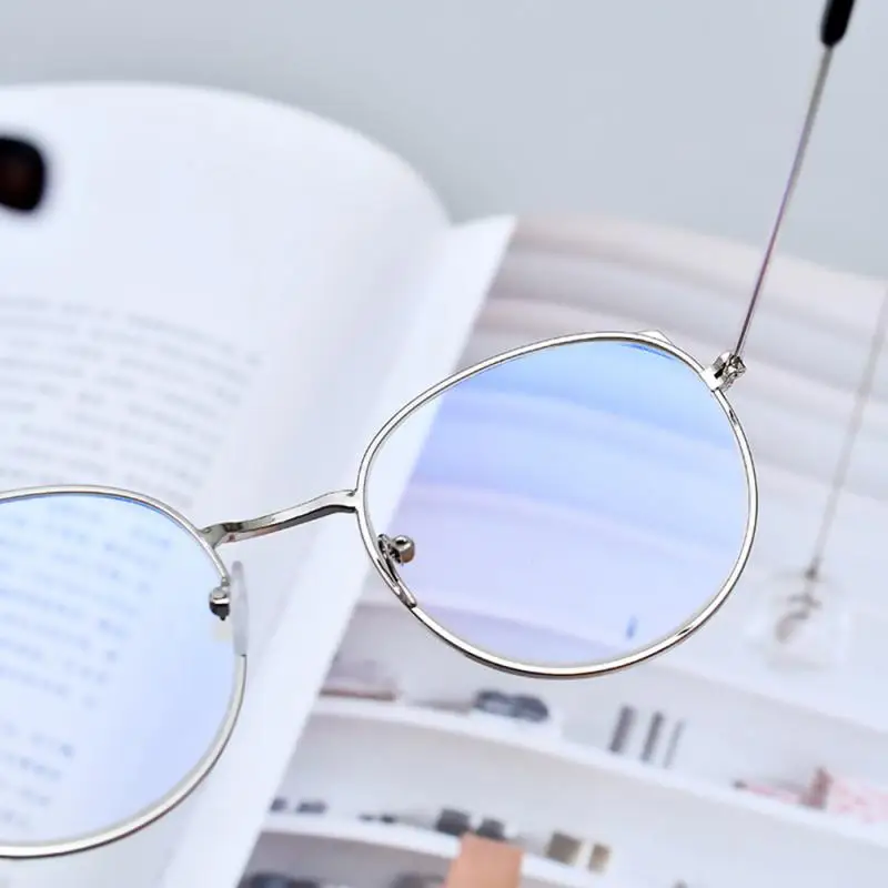 Новинка, модные женские очки, Плоские линзы, корейские кошачьи ушки, Ретро стиль, Классическая винтажная круглая оправа для лица, оправа для очков, синяя пленка, очки, хит продаж