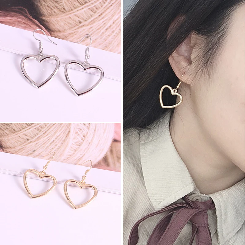 Модные массивные серьги, полые геометрические простые серьги в форме сердца, милая любовь, панк стиль для женщин, металлические серьги с большими крыльями