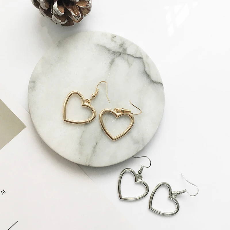 Простые геометрические серьги в форме сердца, милые золотые серьги в форме сердца