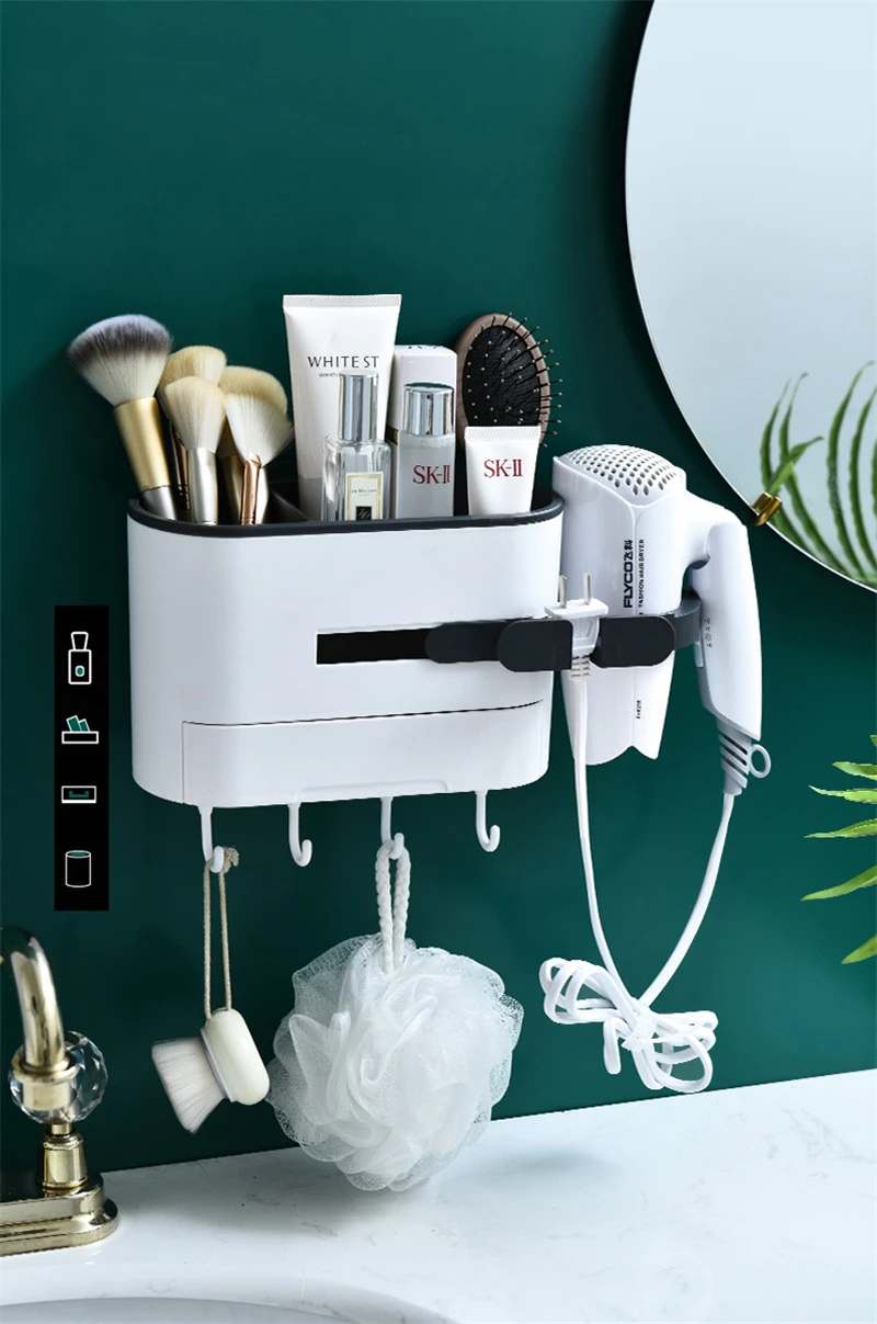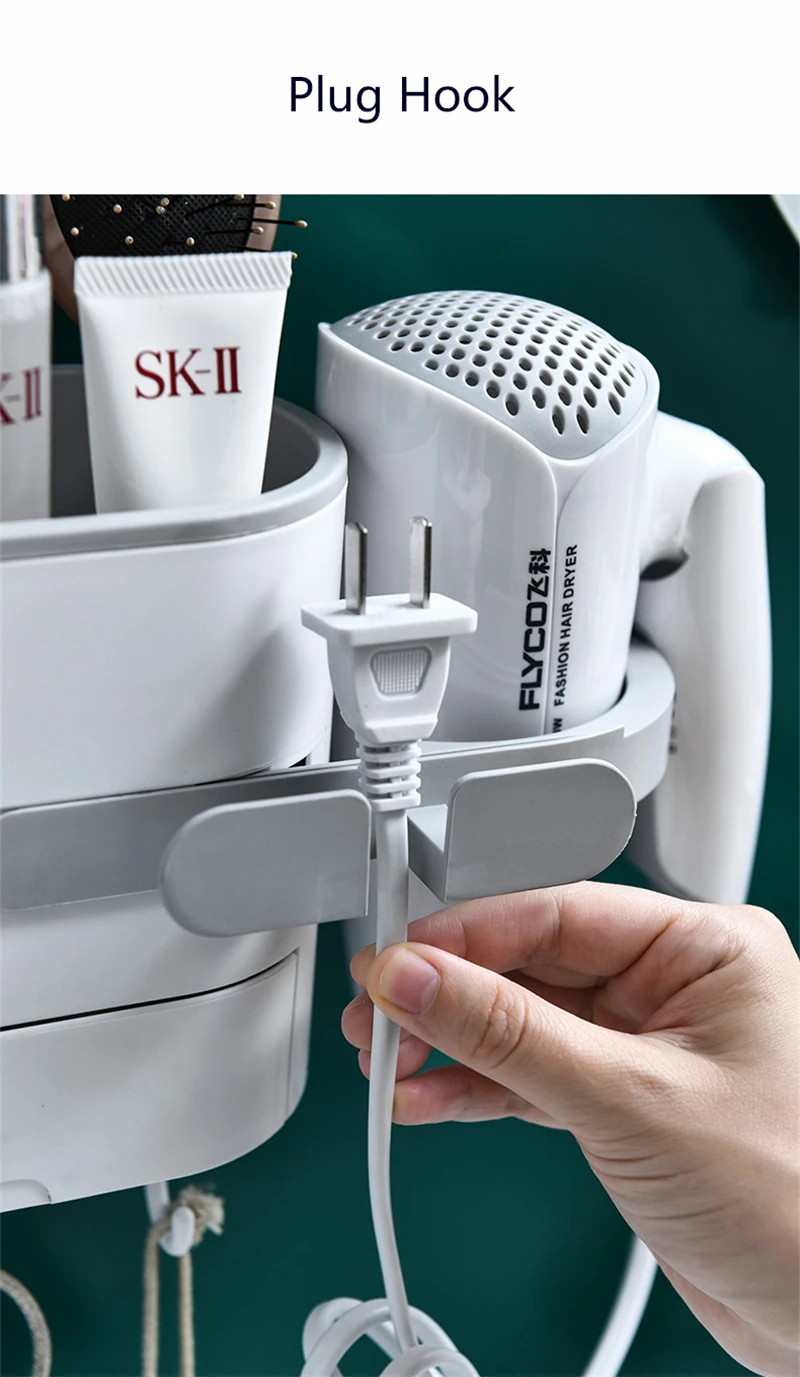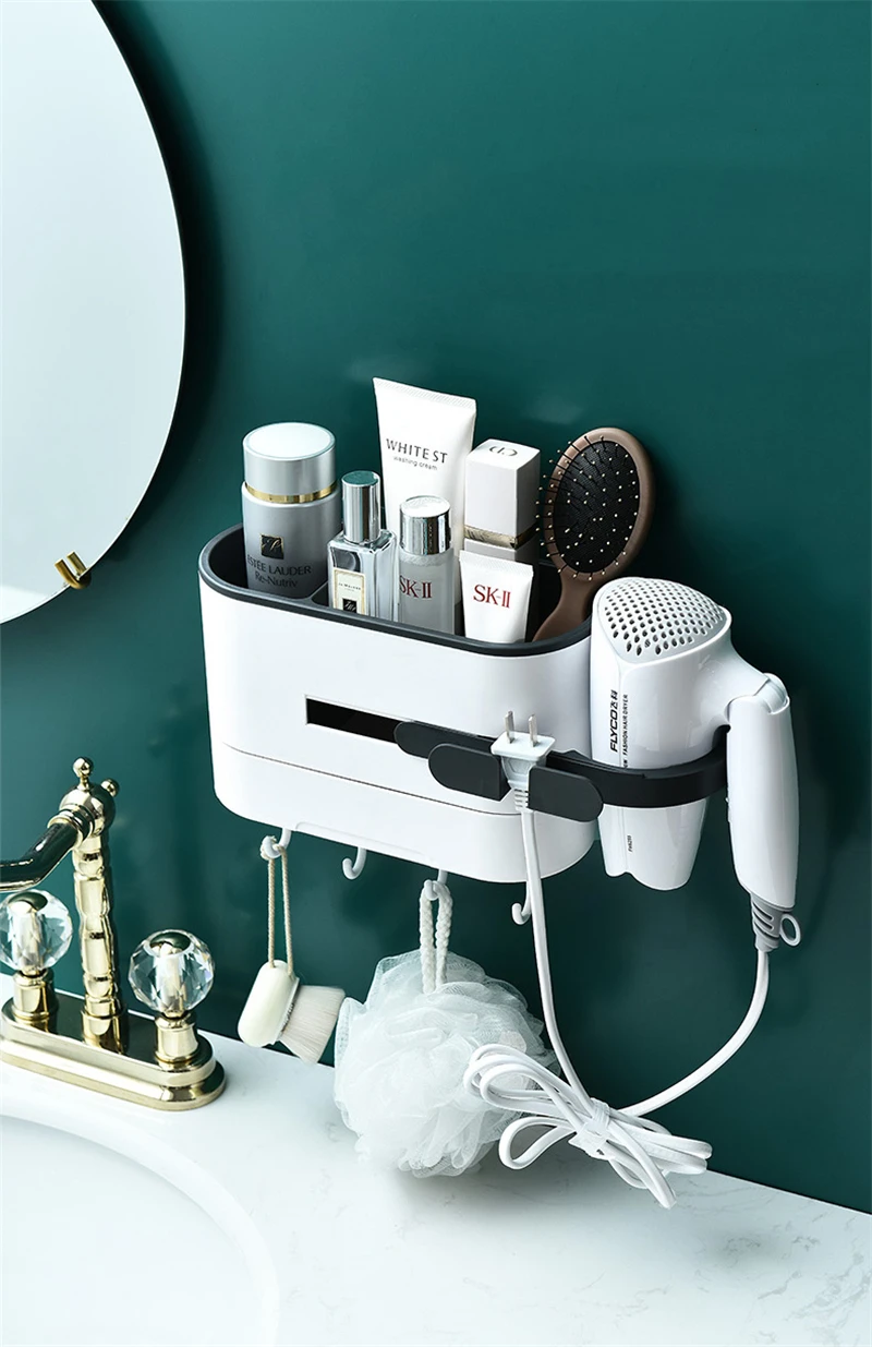 Бездымный фен для волос, стойка для унитаза, стойка для хранения, фен для волос, держатель, бесшовная стойка для хранения с крючками, органайзер для ванной комнаты