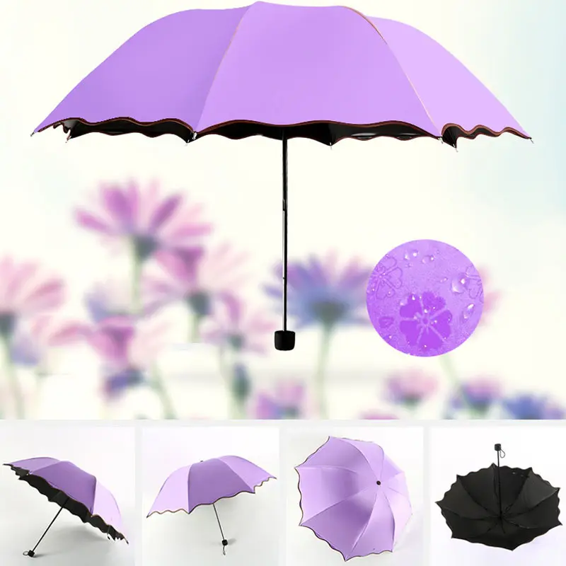 Простой Модный женский зонт, ветрозащитный солнцезащитный волшебный цветочный купол, Ультрафиолетовый Зонт, складывающиеся зонты от солнца и дождя